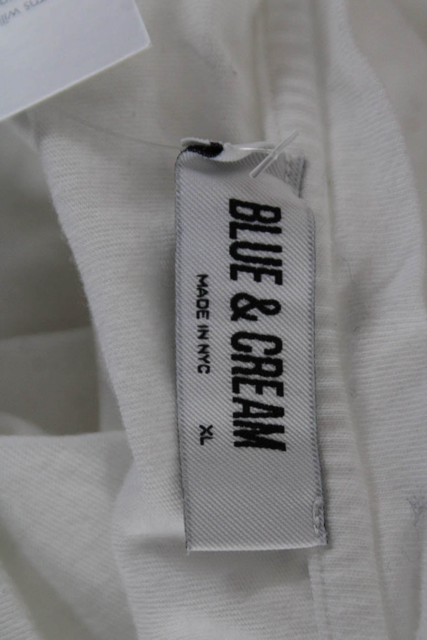Blue & Cream Unisex White Crew Neck Basic Short Sleeve T-Shirt Size XL