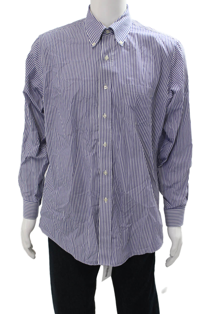 Brooks Brothers Mens Classic Striped Cotton Collared Dress Shirt Size 16