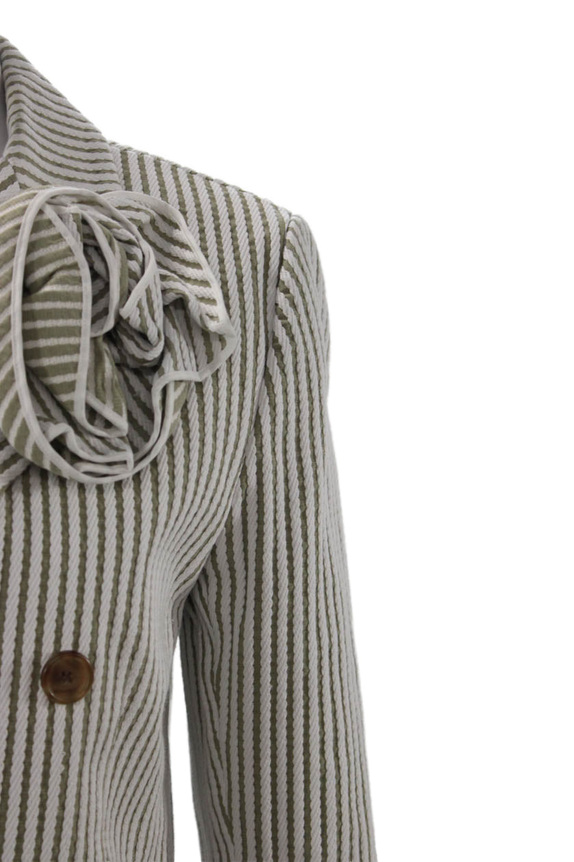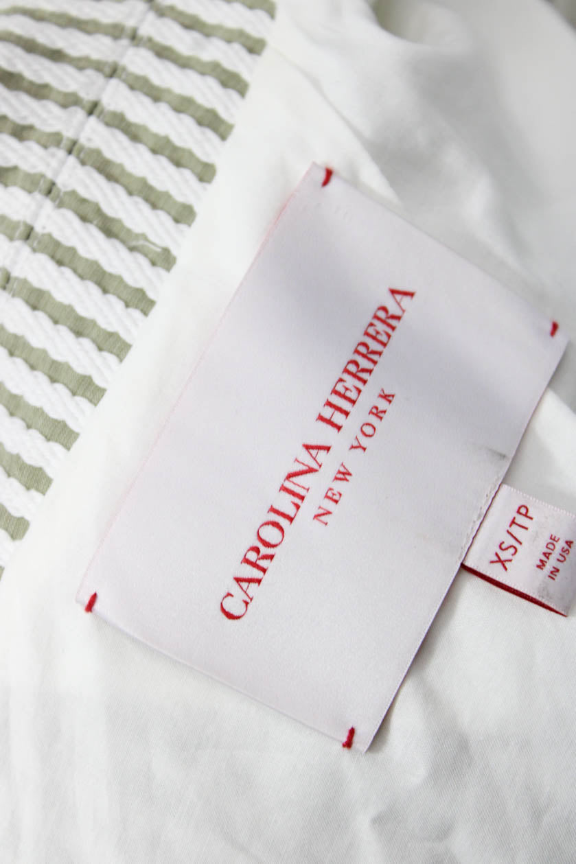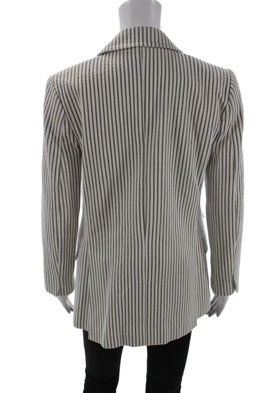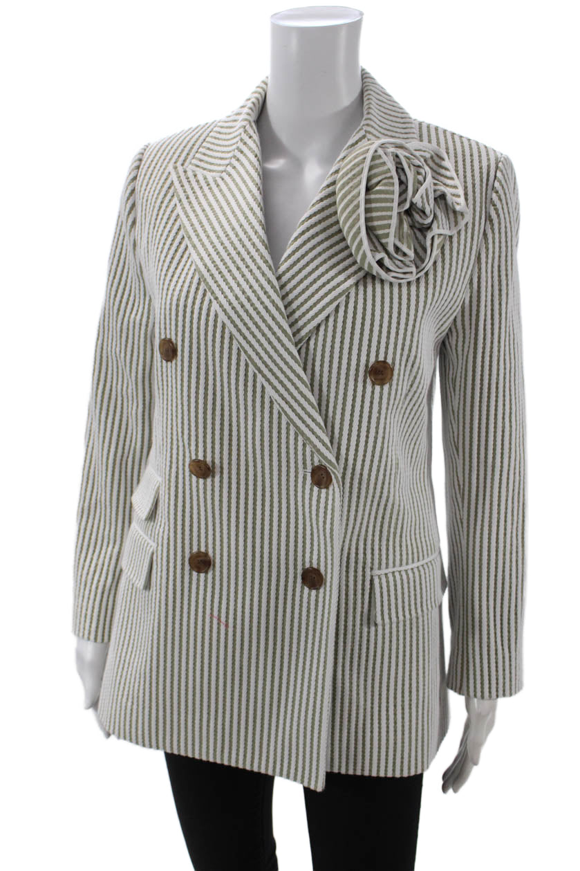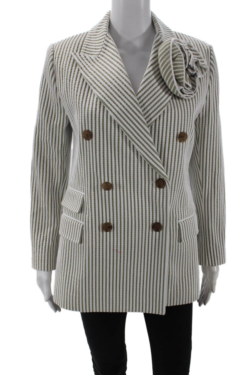 Carolina Herrera Womens Double Breasted Striped Blazer Jacket White Brown XS