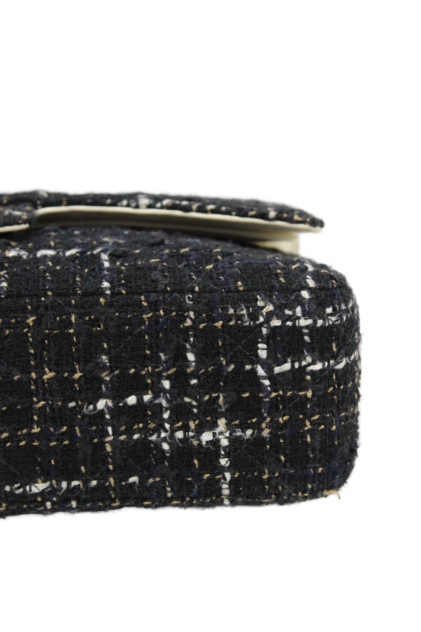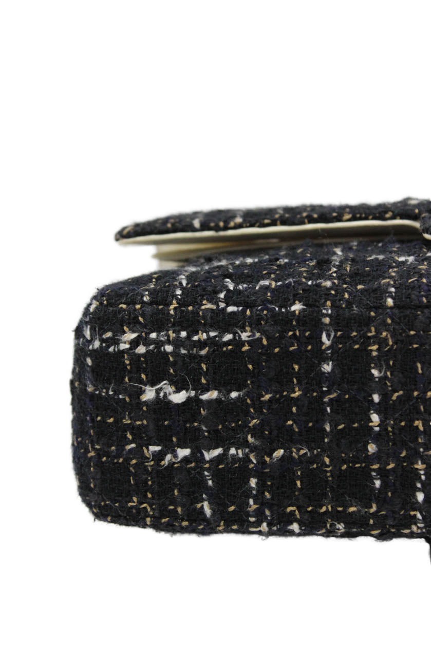 Chanel Womens Tweed Double Flap Chain Strap Shoulder Black