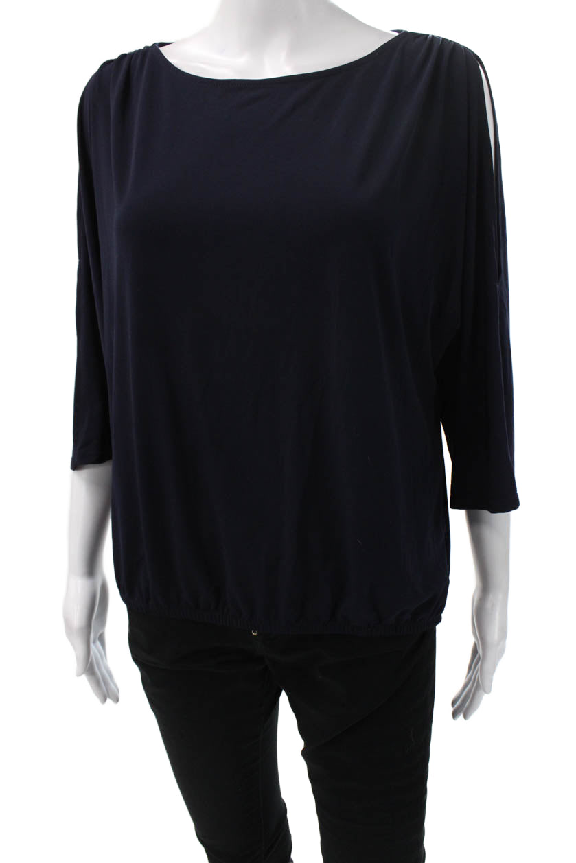 Chicos Womens Dark Blue Basic Blouse 3/4 Sleeve Dolman Size 1
