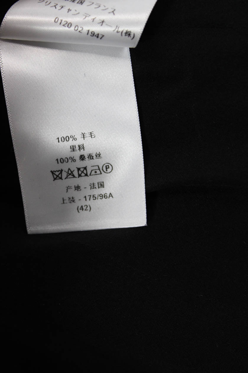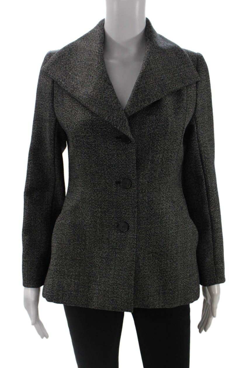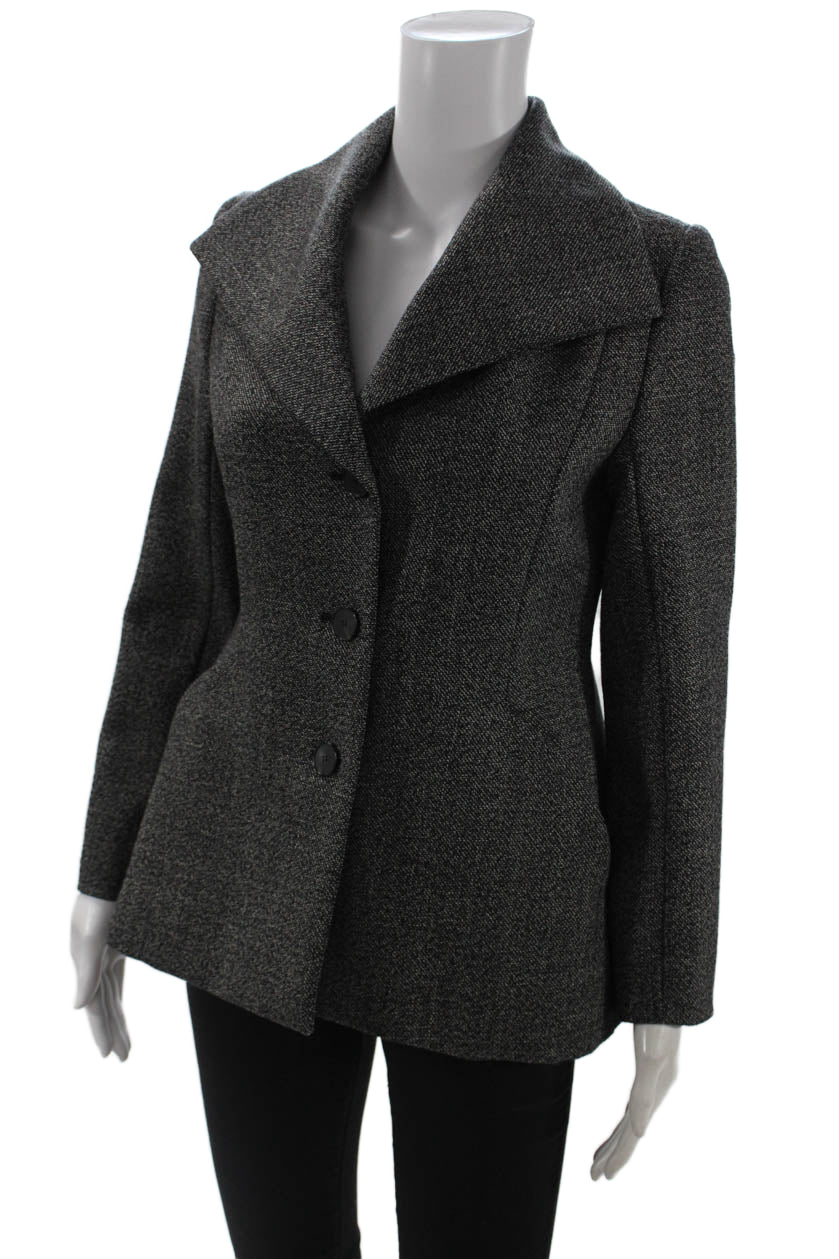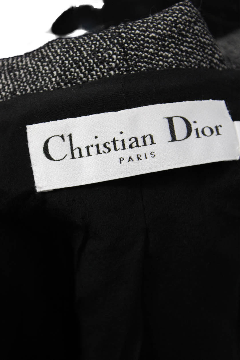 Christian Dior Womens Dark Gray Herringbone Wool Blazer Size 10