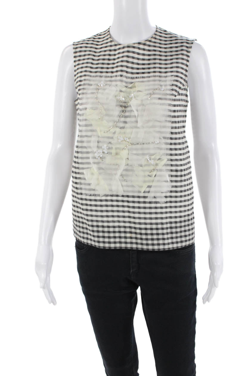 Christian Wijnants Womens Silk Checkered Sleeveless Tank Top Black Size 36