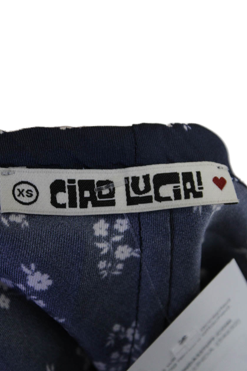 Ciao Lucia! Womens Textured Floral Printed Slit Mid Length Skirt Blue Size XS