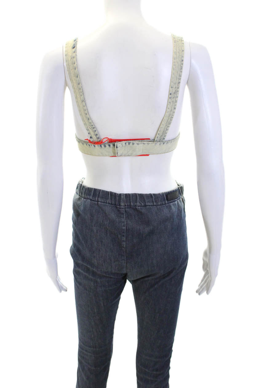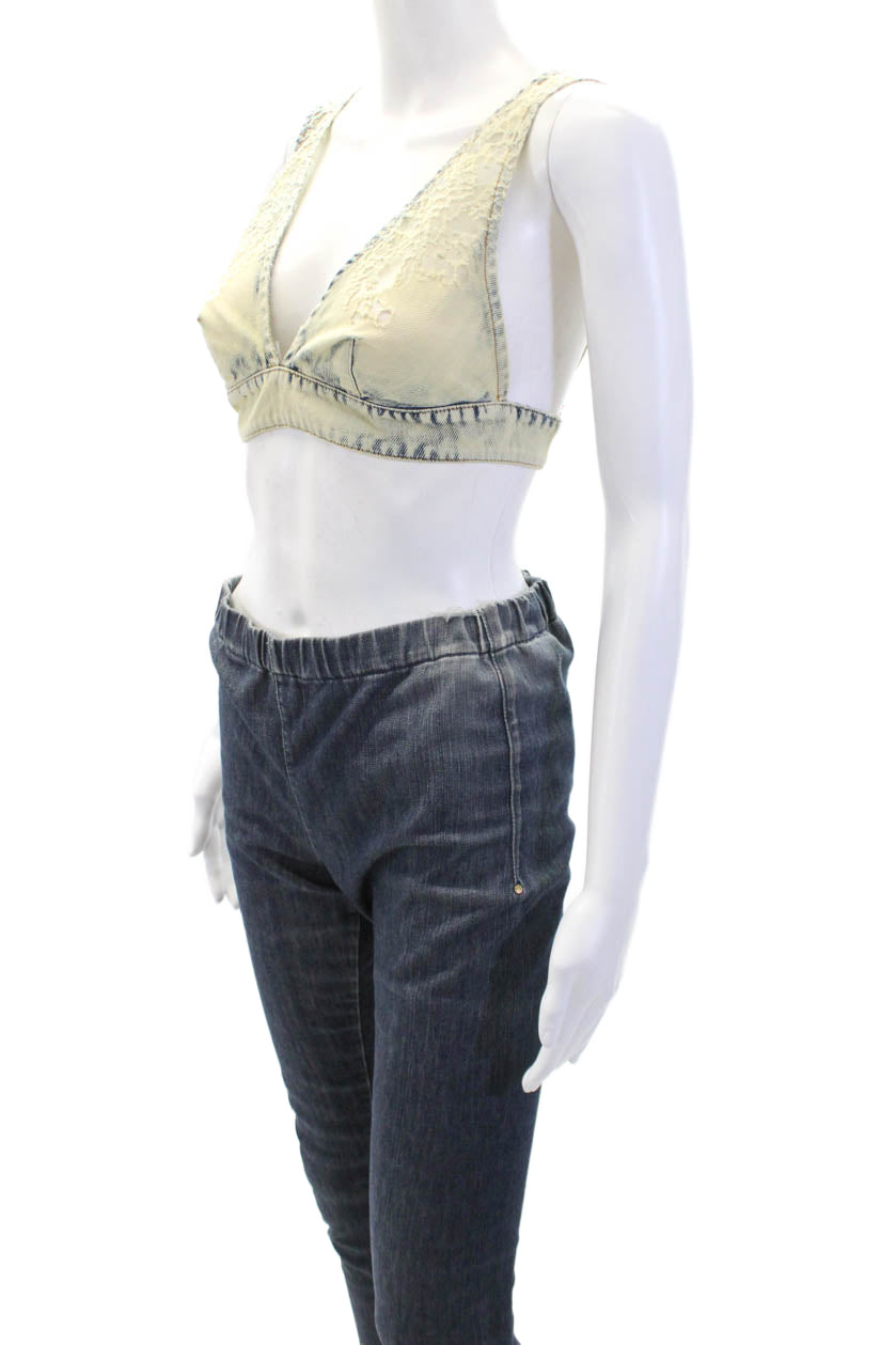 Diesel Women's Lace Trim Trim Triangle Medium Denim Wash Cropped Top Size XS