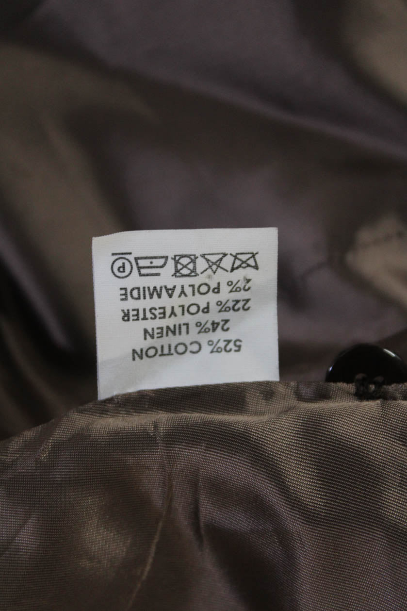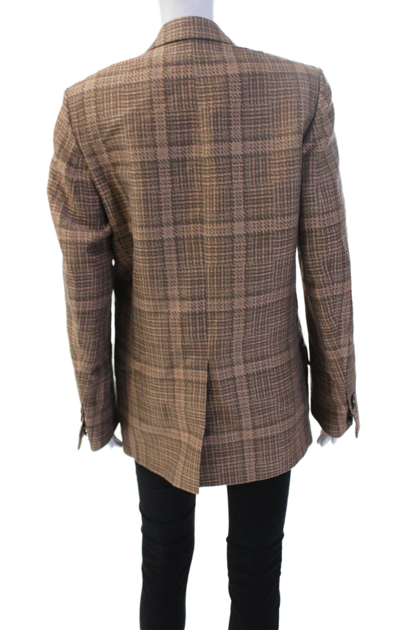 Dries Van Noten Unisex Brown Plaid Blazer V-Neck Cotton Linen Blend Size 34