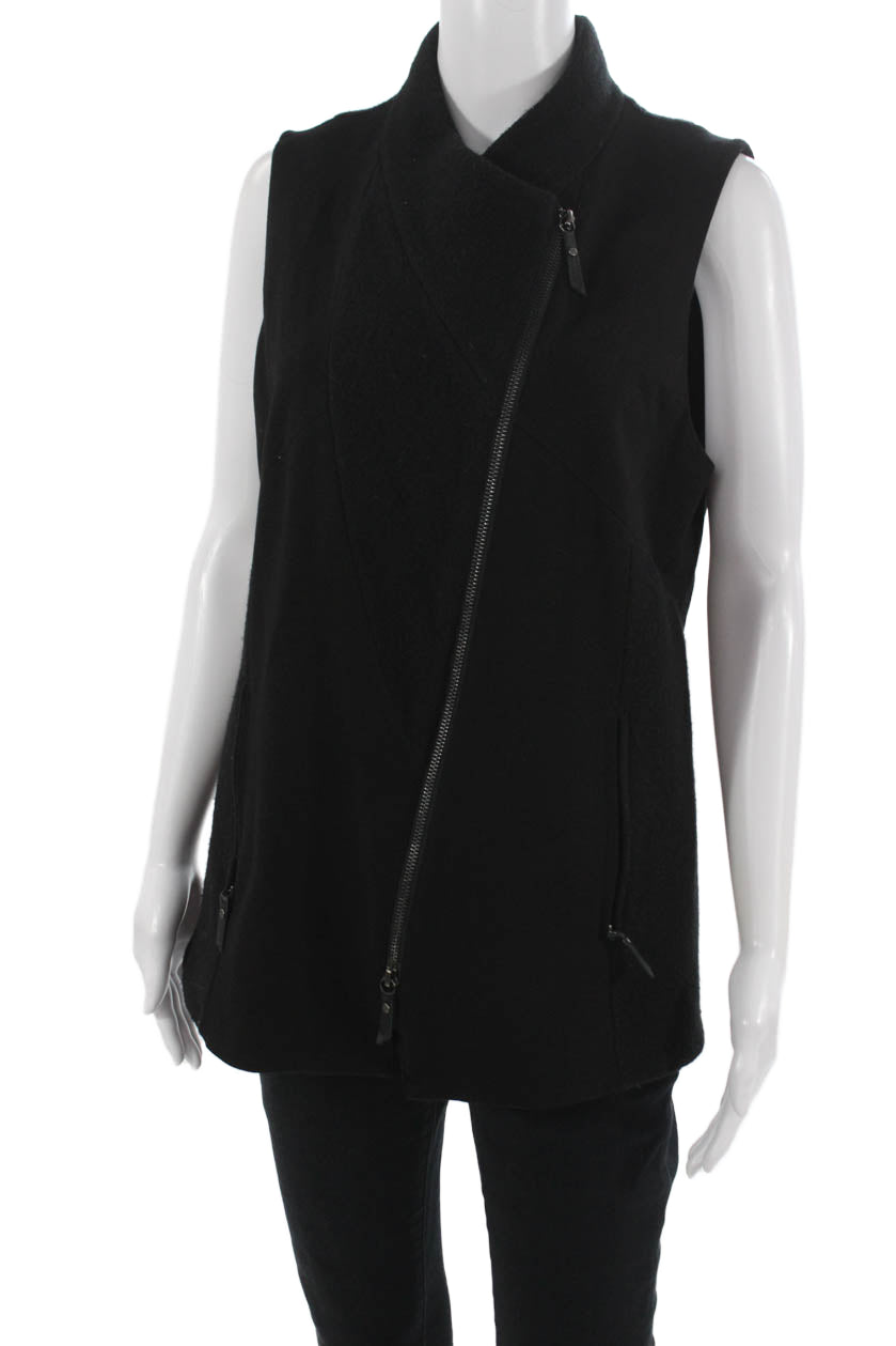 Eileen Fisher Womens Vest Black High Neck Sleeveless Zip Closure Size M