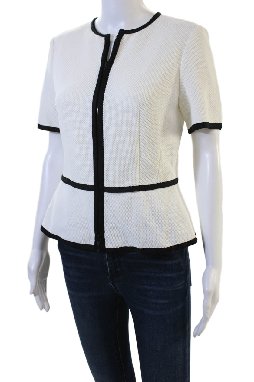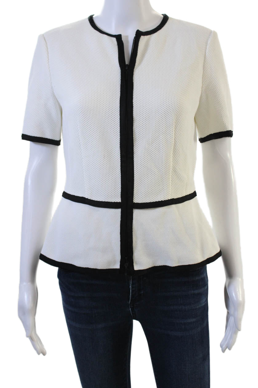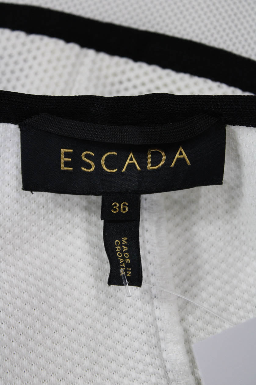 Escada Women Black Zip Crew Neck Short Sleeve Top Size 36