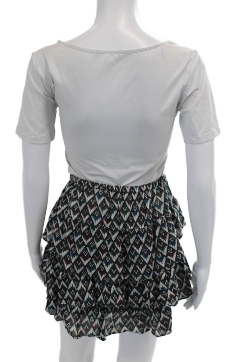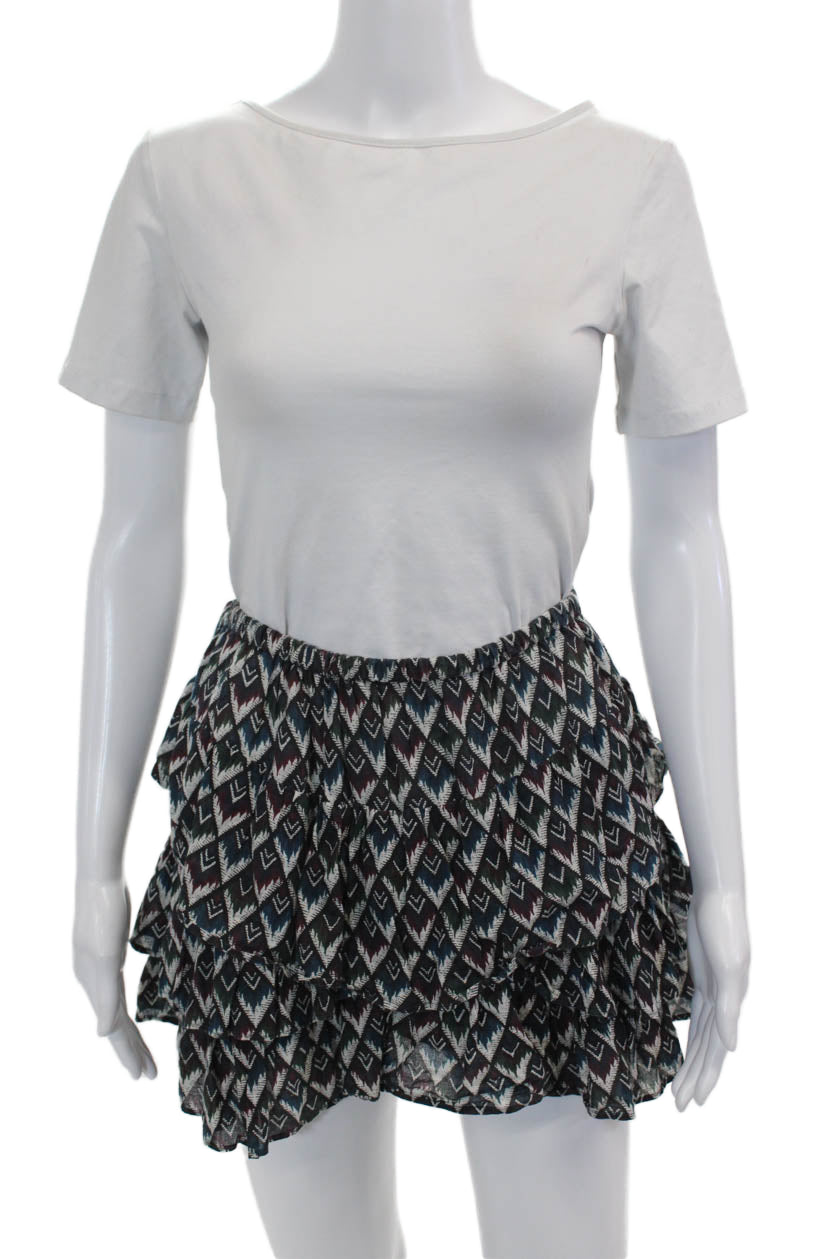 Etoile Isabel Marant Womens Cotton Elastic Waist Tiered Skirt Multi Size 02