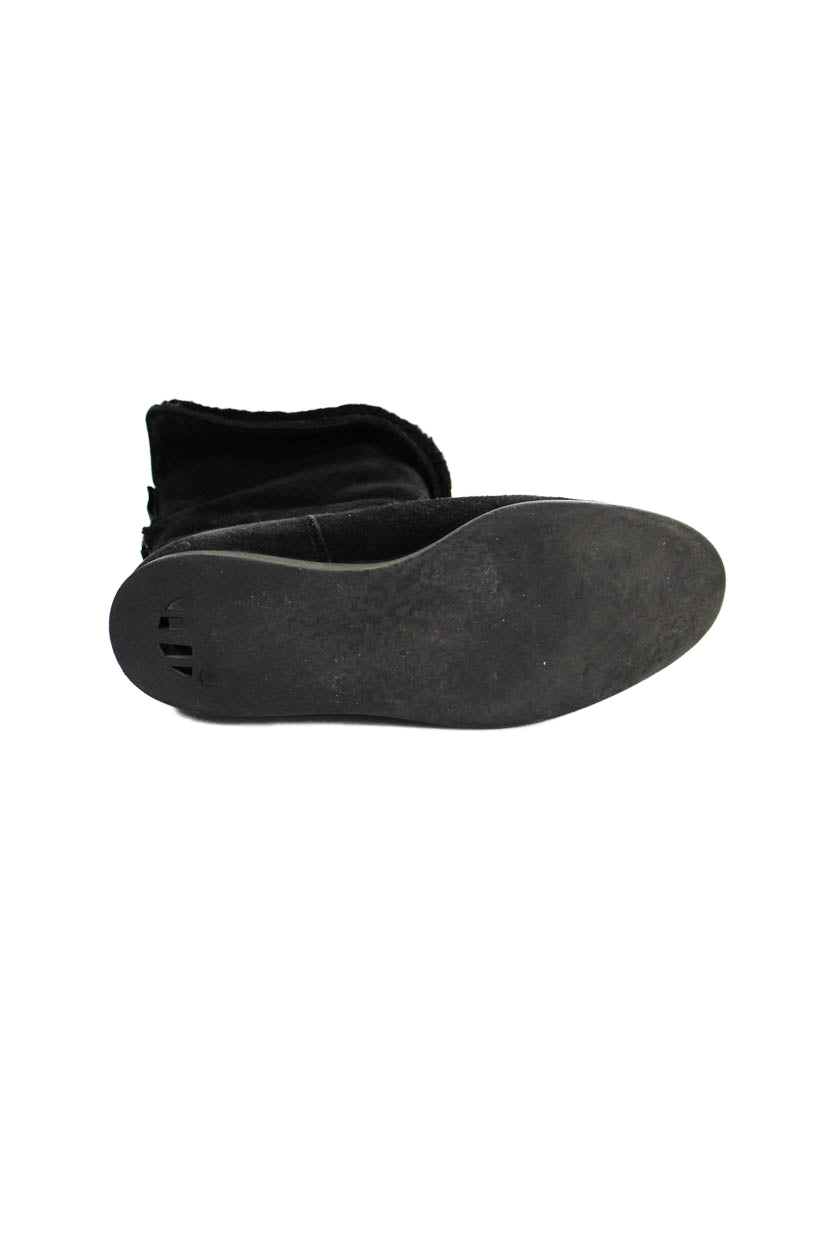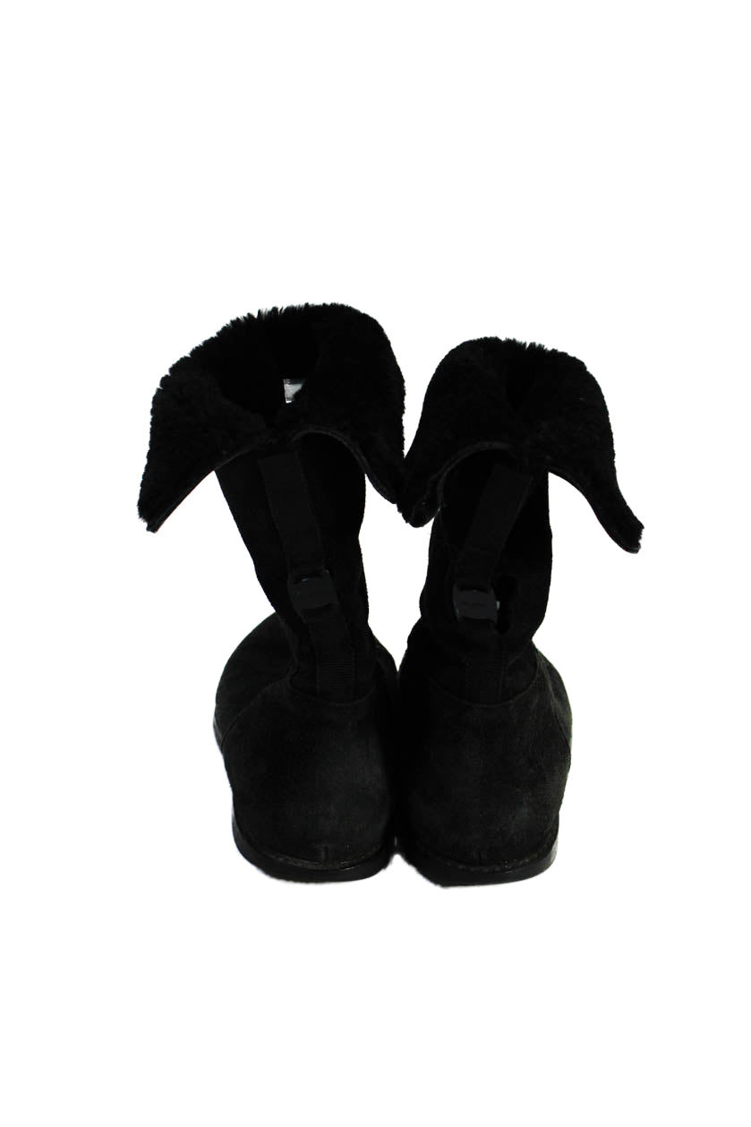 Ferragamo Womens Suede Shearling Lined Slip On Boots Black Size 7