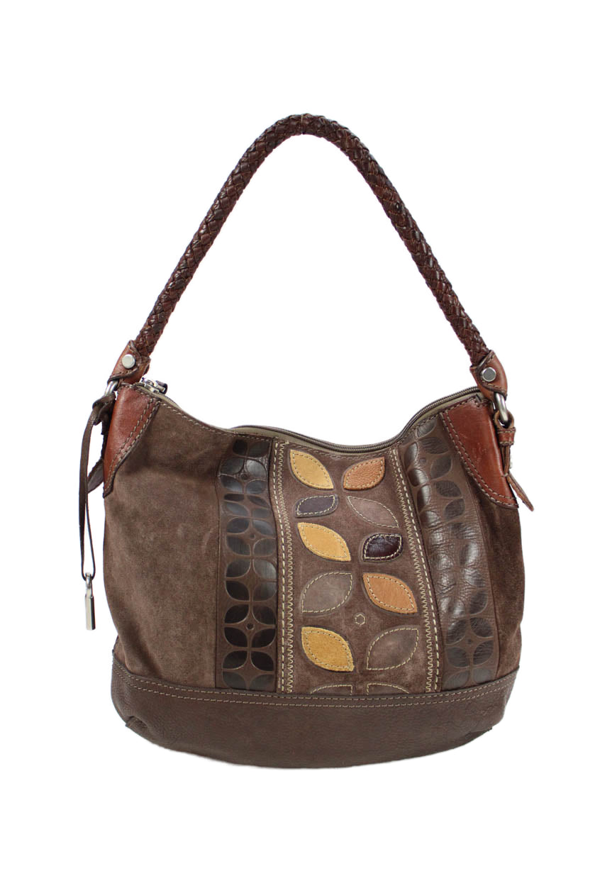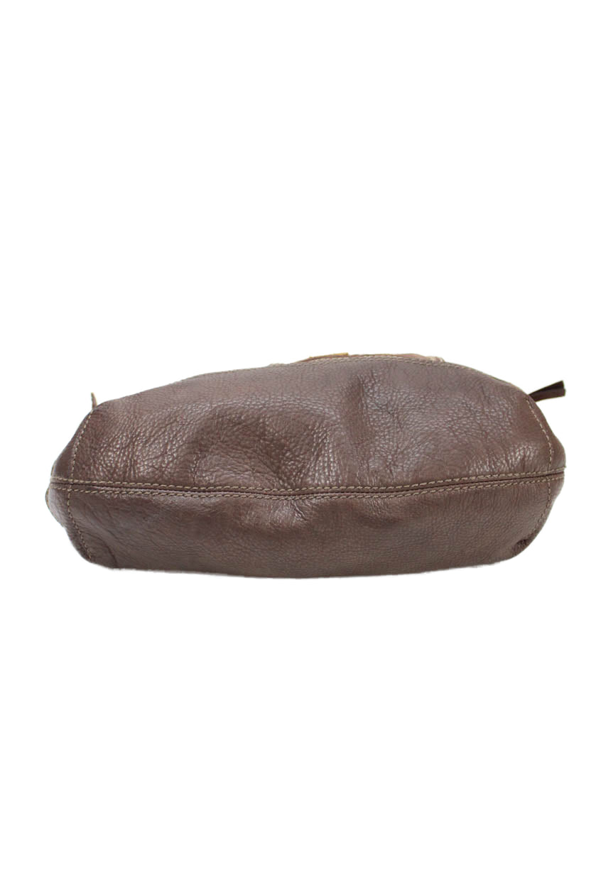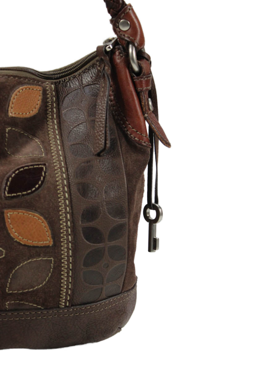 Fossil Womens Leather Zip Up Shoulder Bag Brown