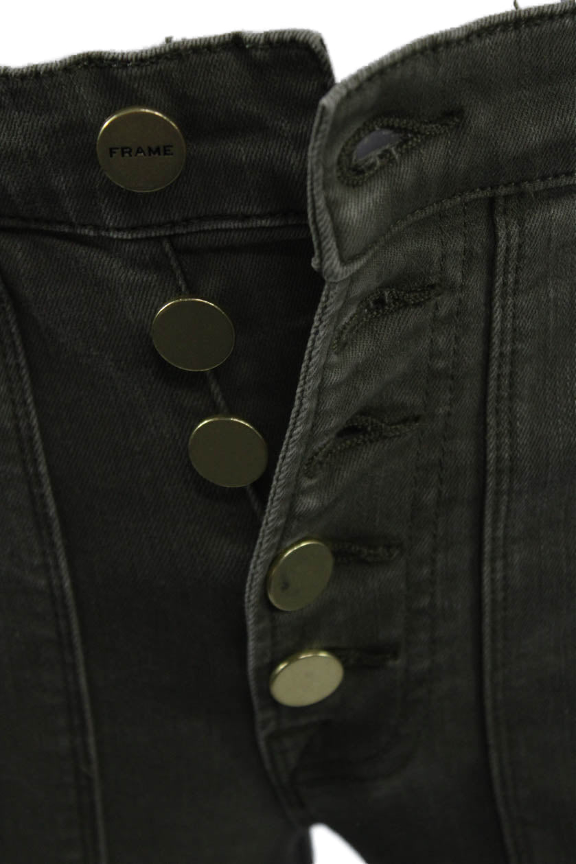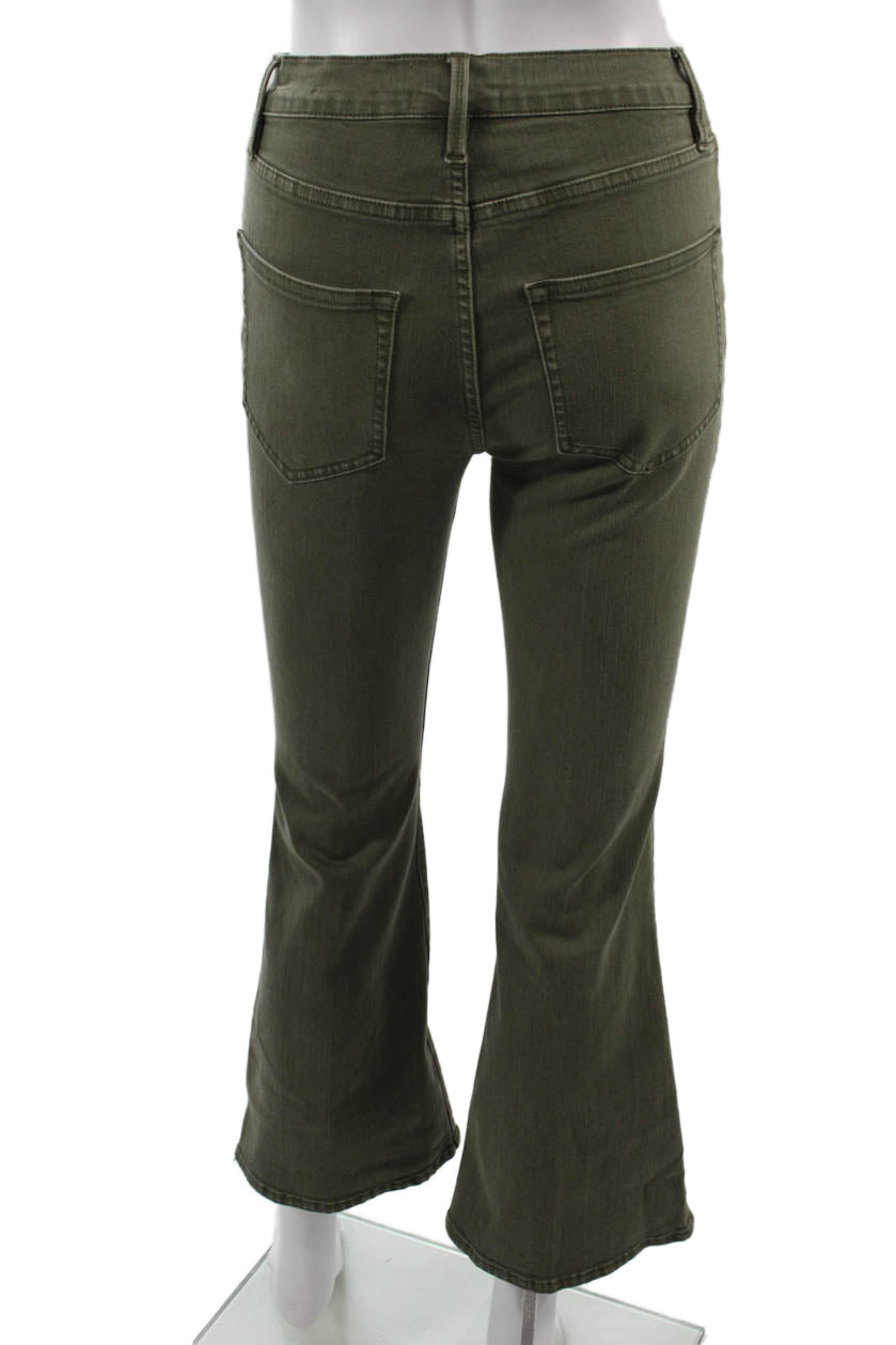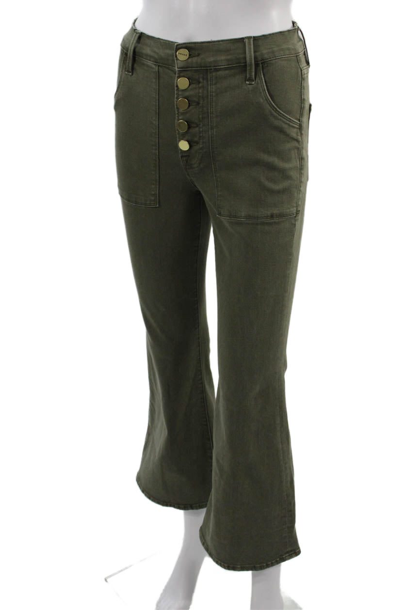 Frame Women Cropped High Rise Jeans Army Green Button Size 25