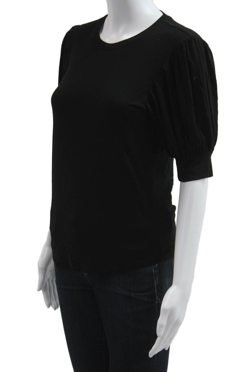 Frame Womens Black Basic Jersey T-Shirt Crew Neck Short Sleeve Size XS