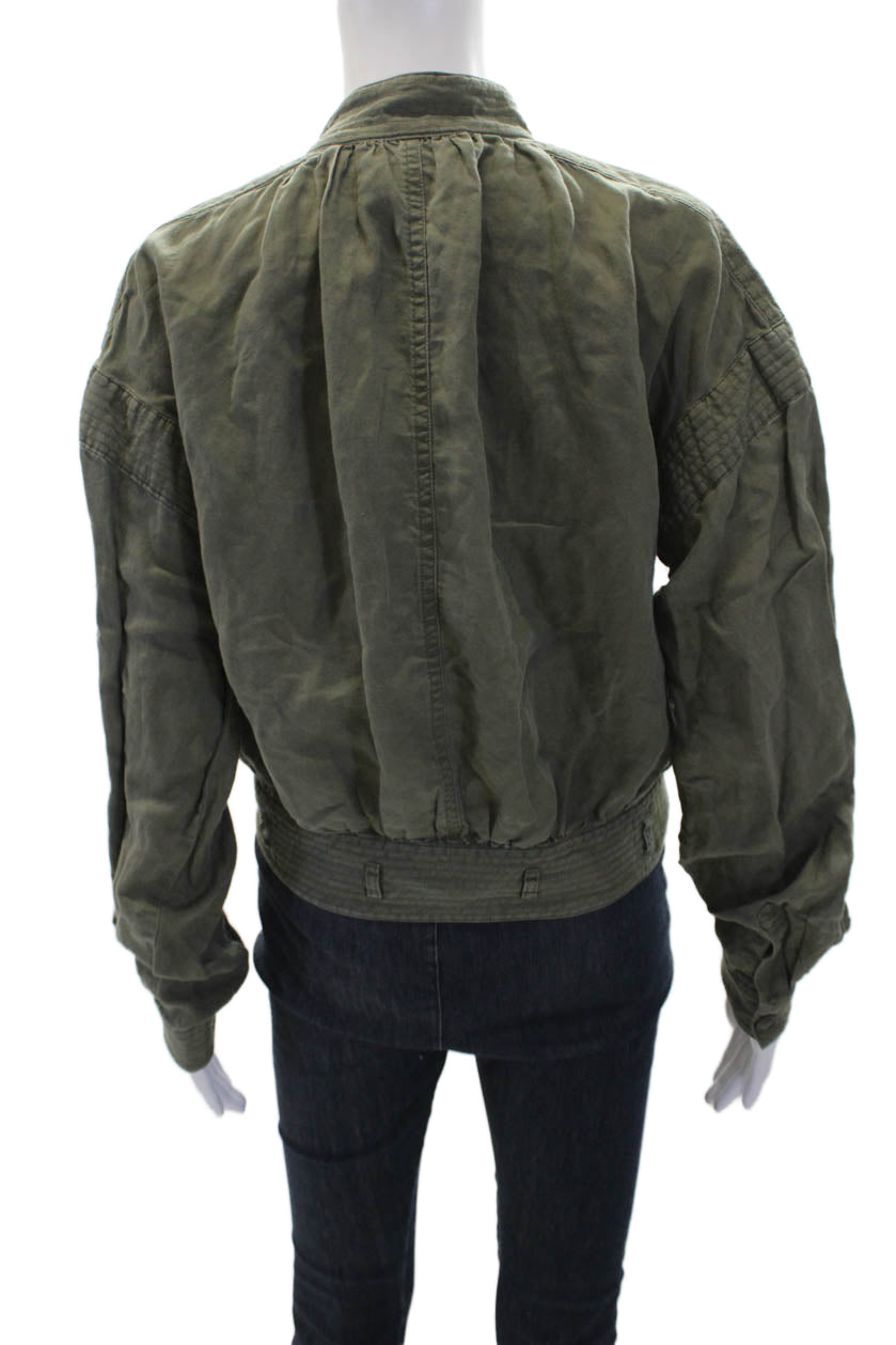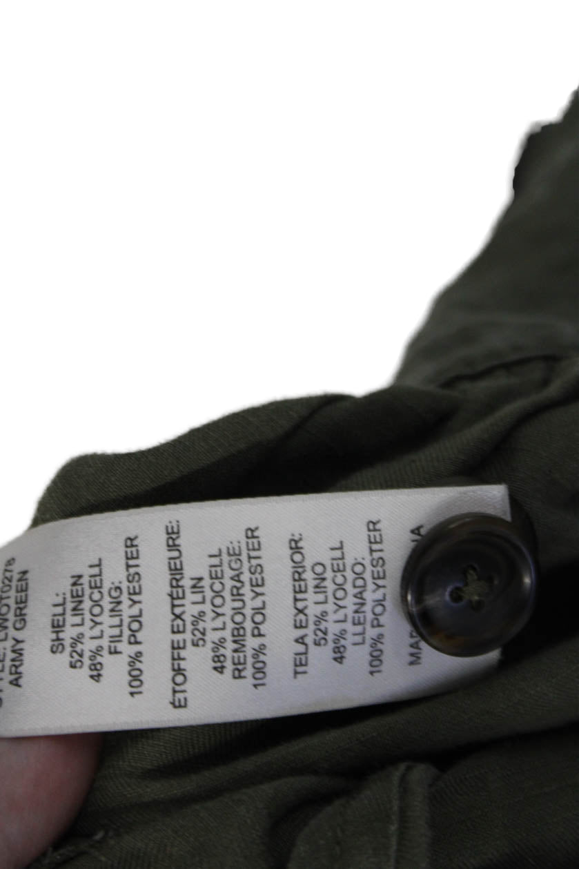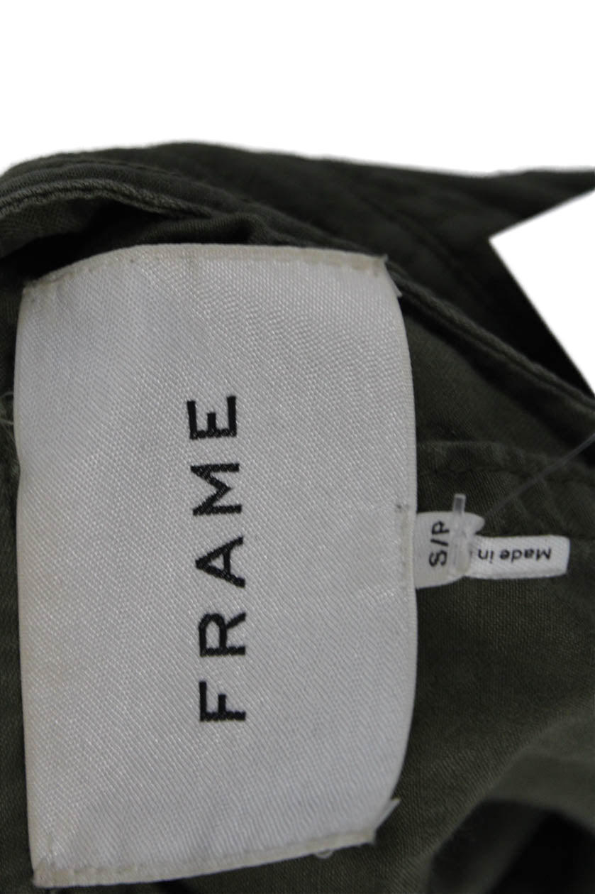 Frame Womens Linen Long Sleeve Collared Button-Down Shirt Green Size S