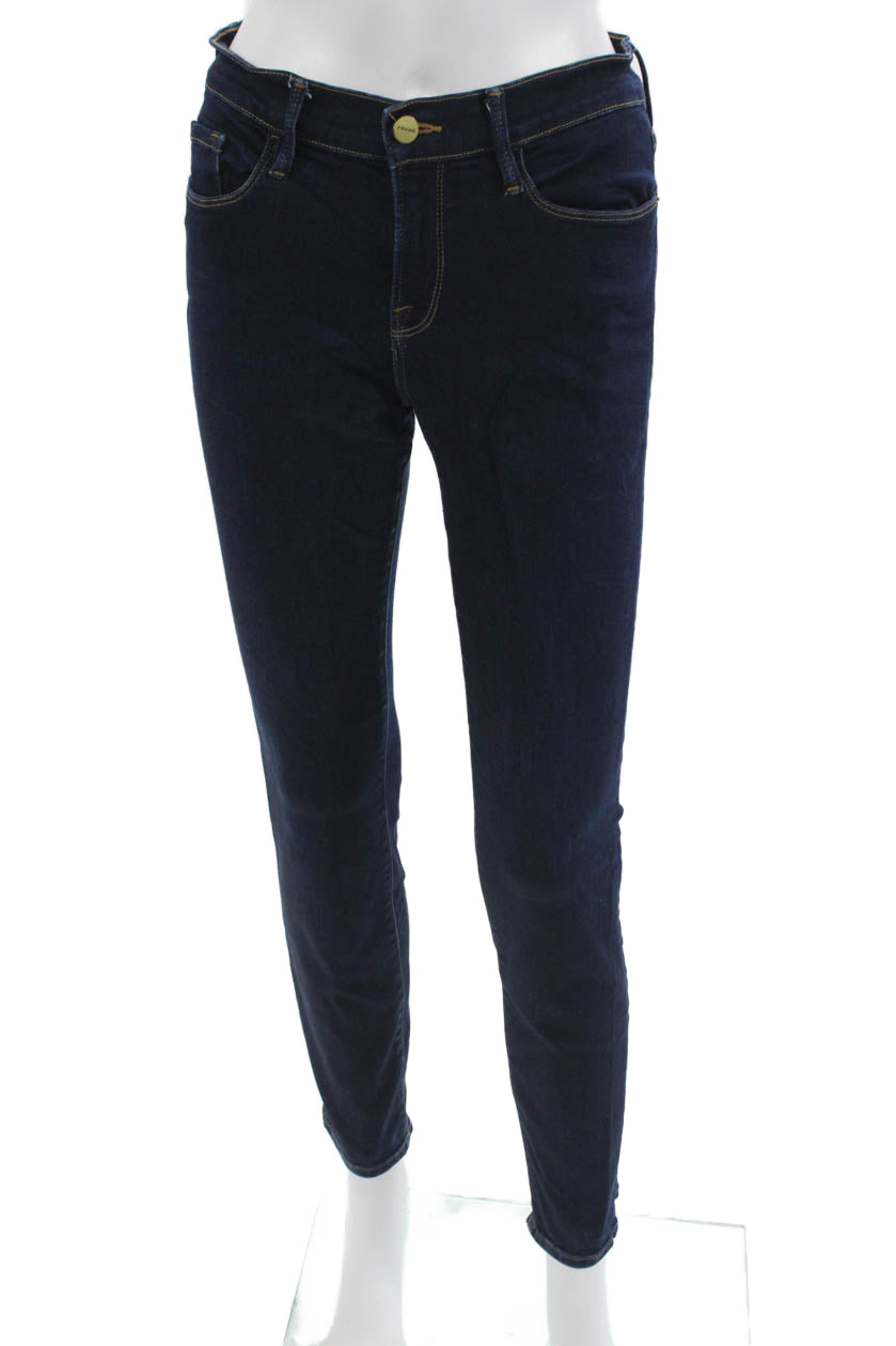 Frame Womens Skinny Jeans Dark Blue Mid Rise Button Size 29