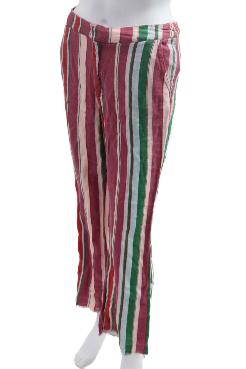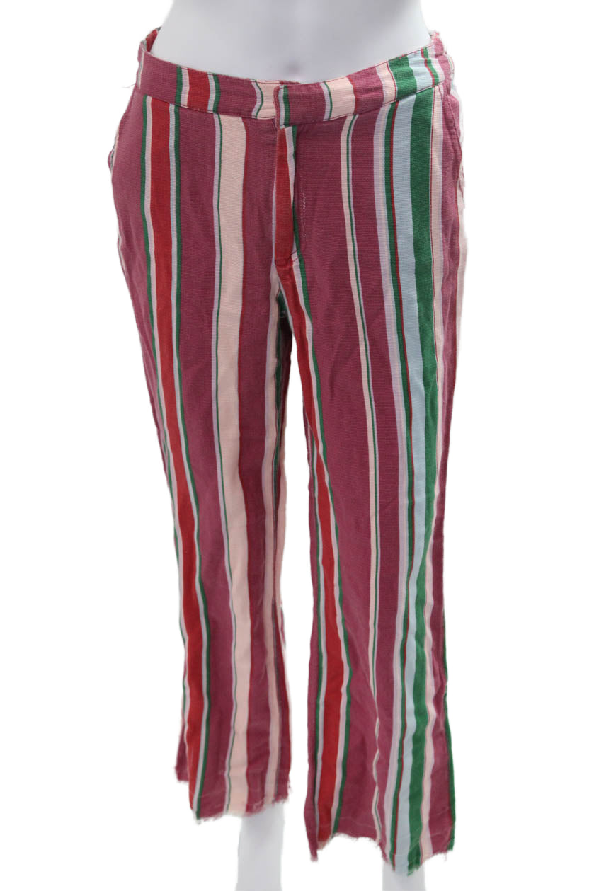 Free People Womens Bohemian Striped Button Pants Green Size 2