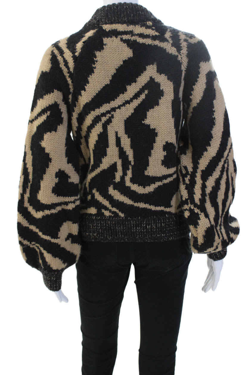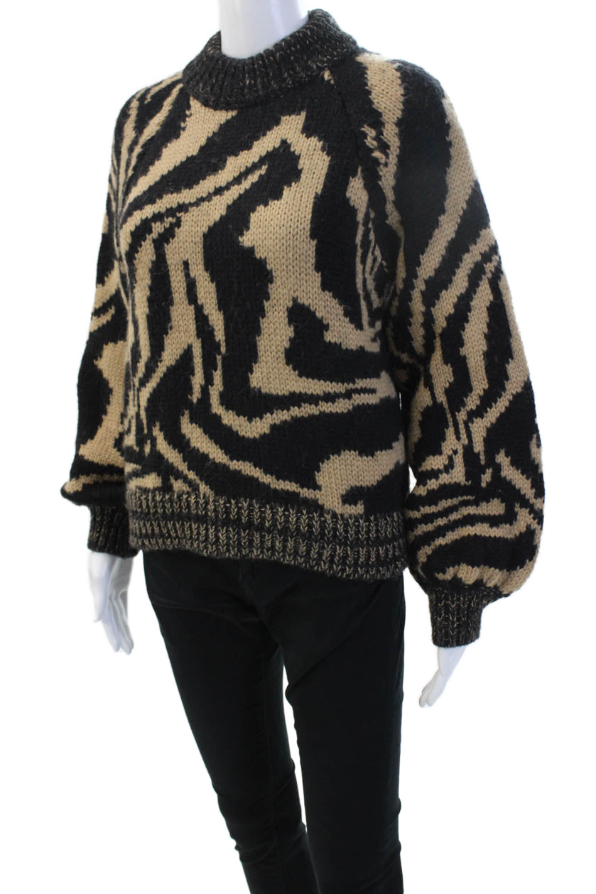 Ganni Unisex Pullover Sweater Beige Animal Print Wool-Alpaca Size S