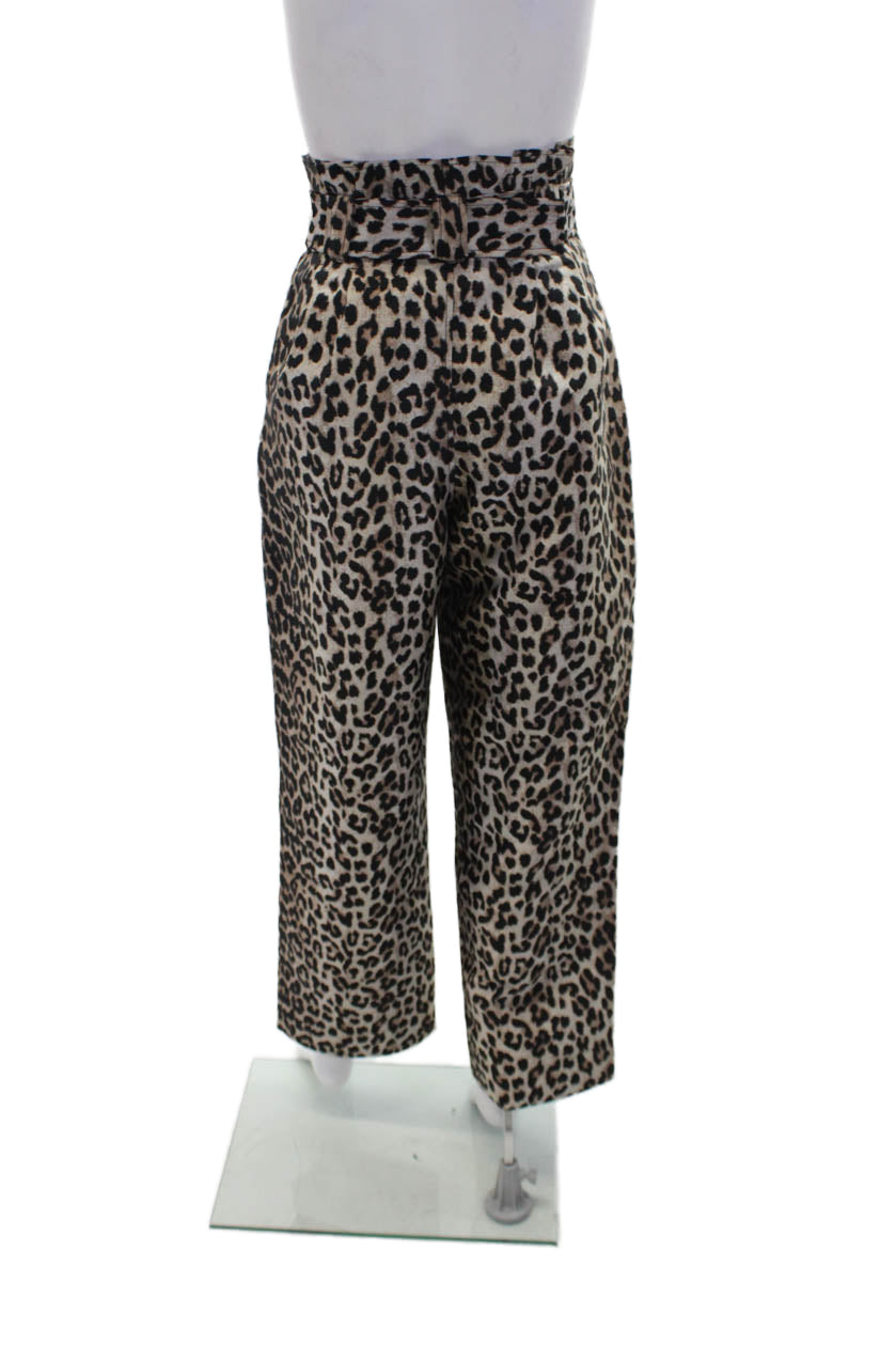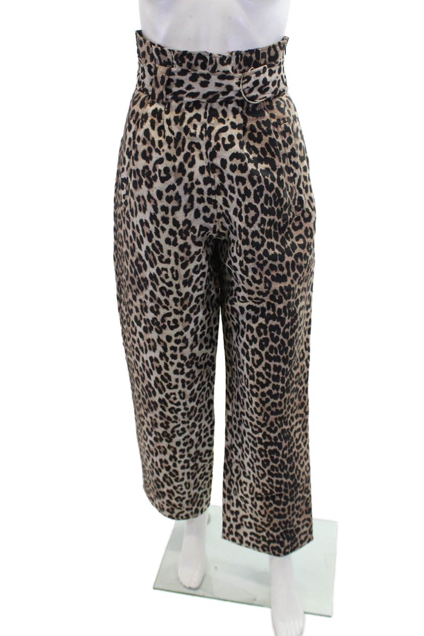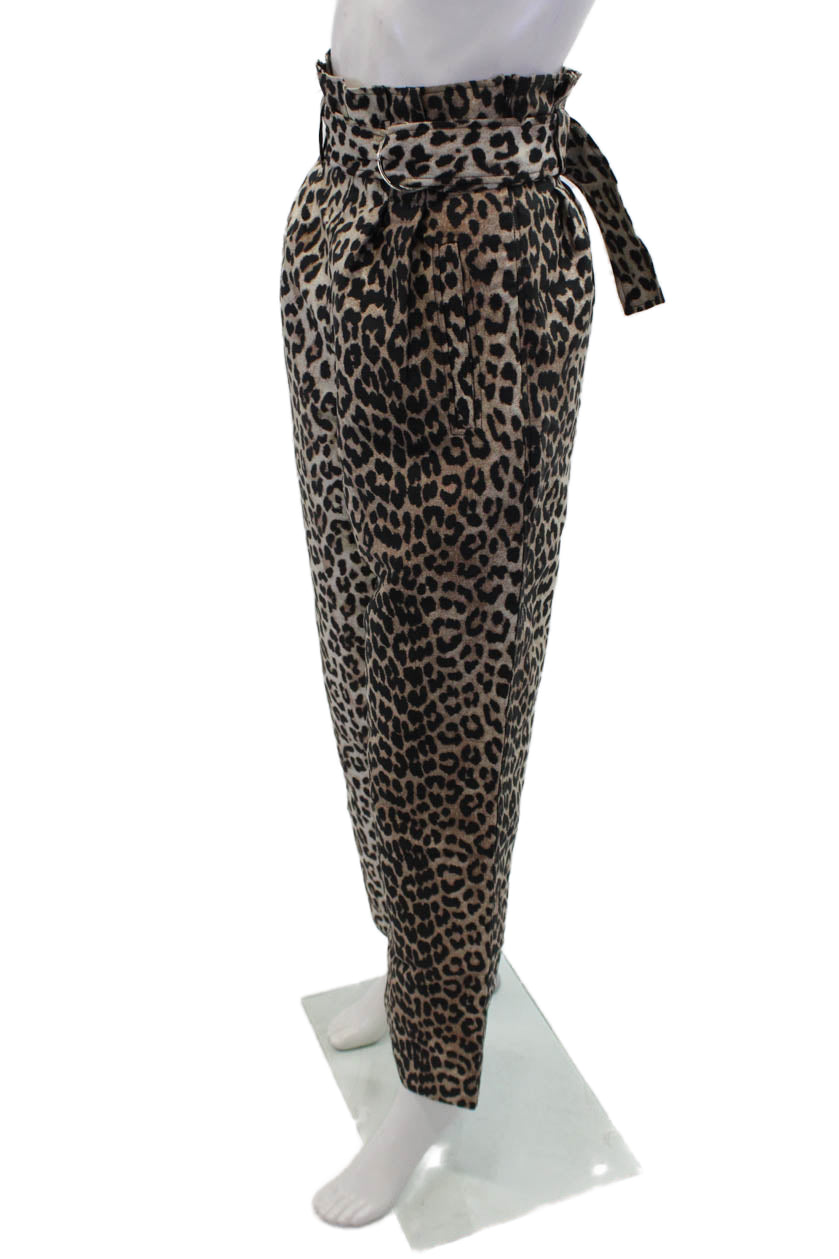 Ganni Womens Animal Print Belted High-Rise Wide-Leg Pants Brown Size 32