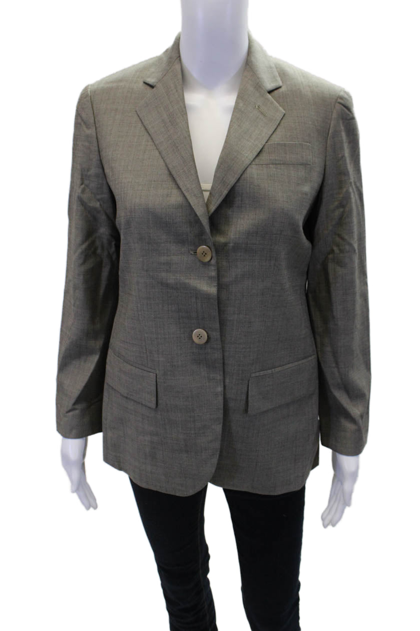 Giorgio Armani Womens Two Button Notched Lapel Blazer Jacket Gray Wool IT 38