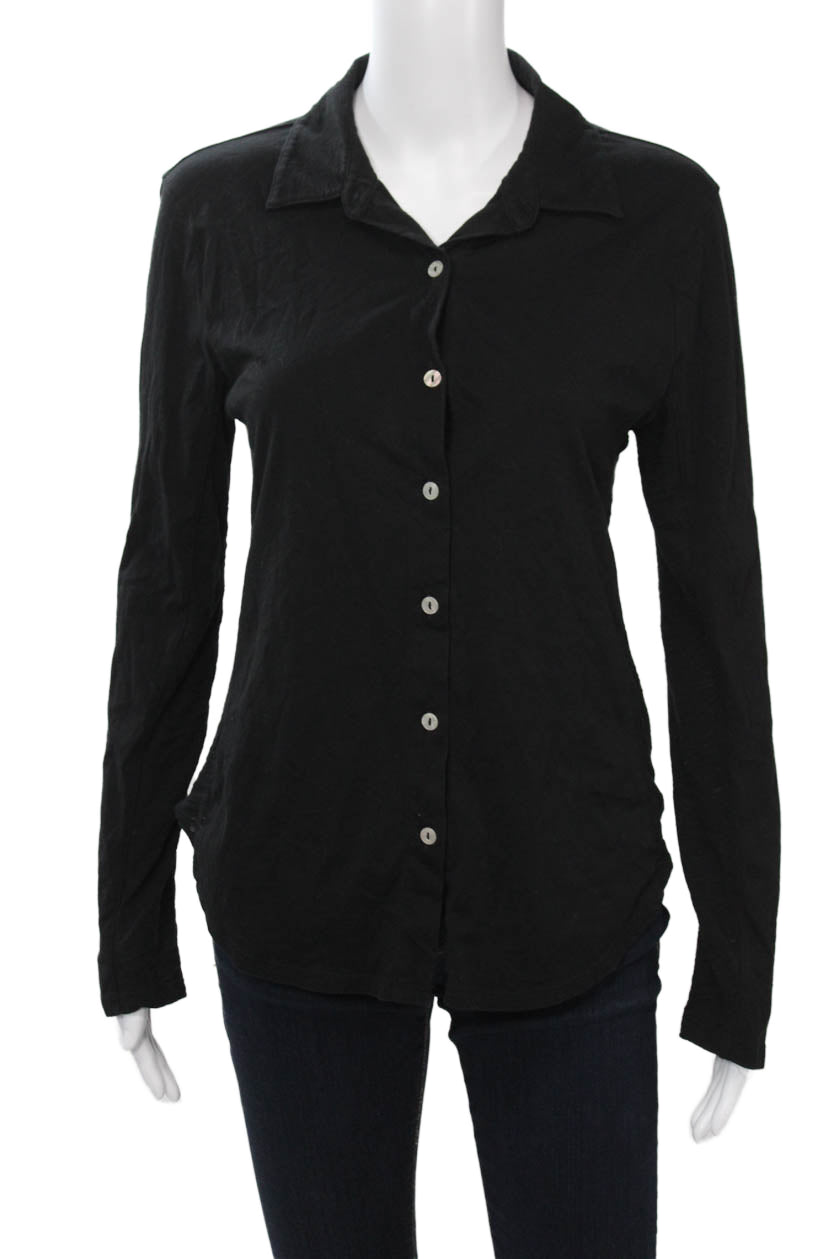 • Goldie Women Collared Long Sleeve Basic Button-Up Black Pima Cotton Size M
