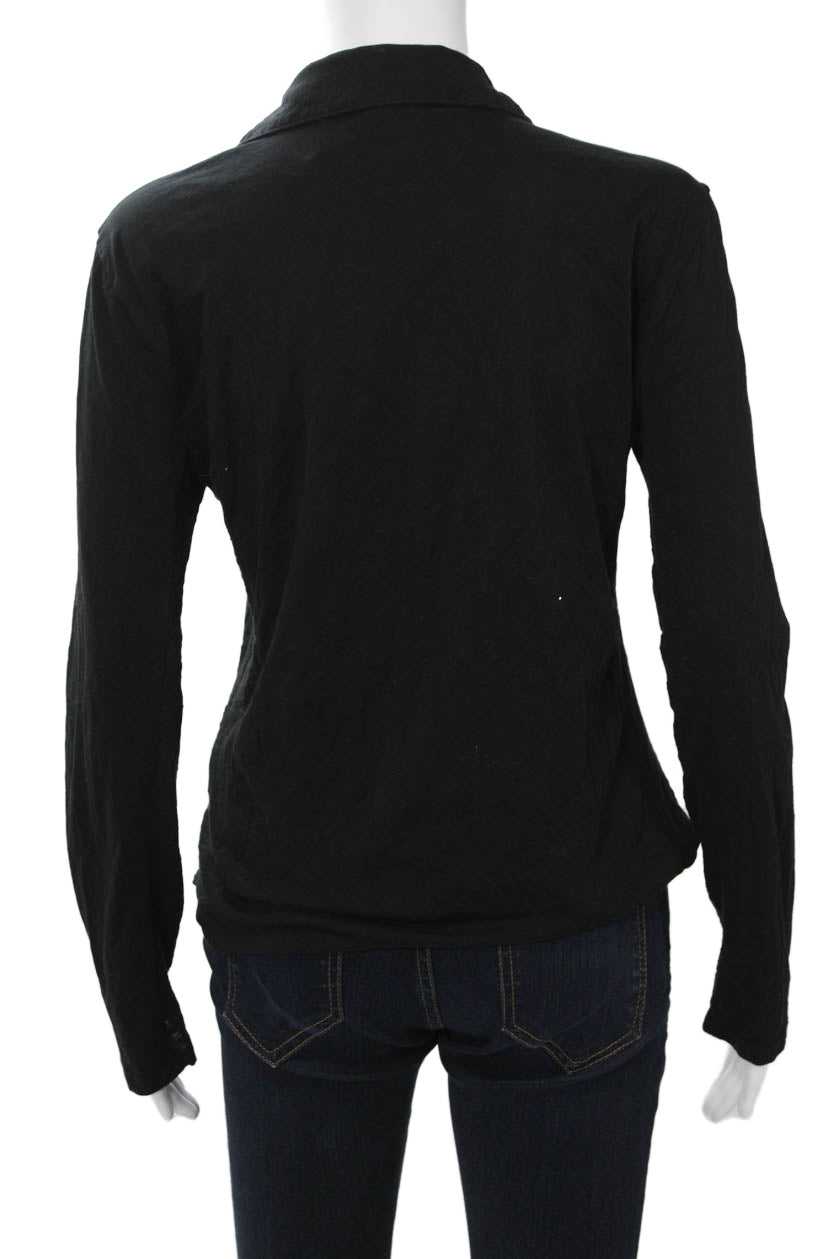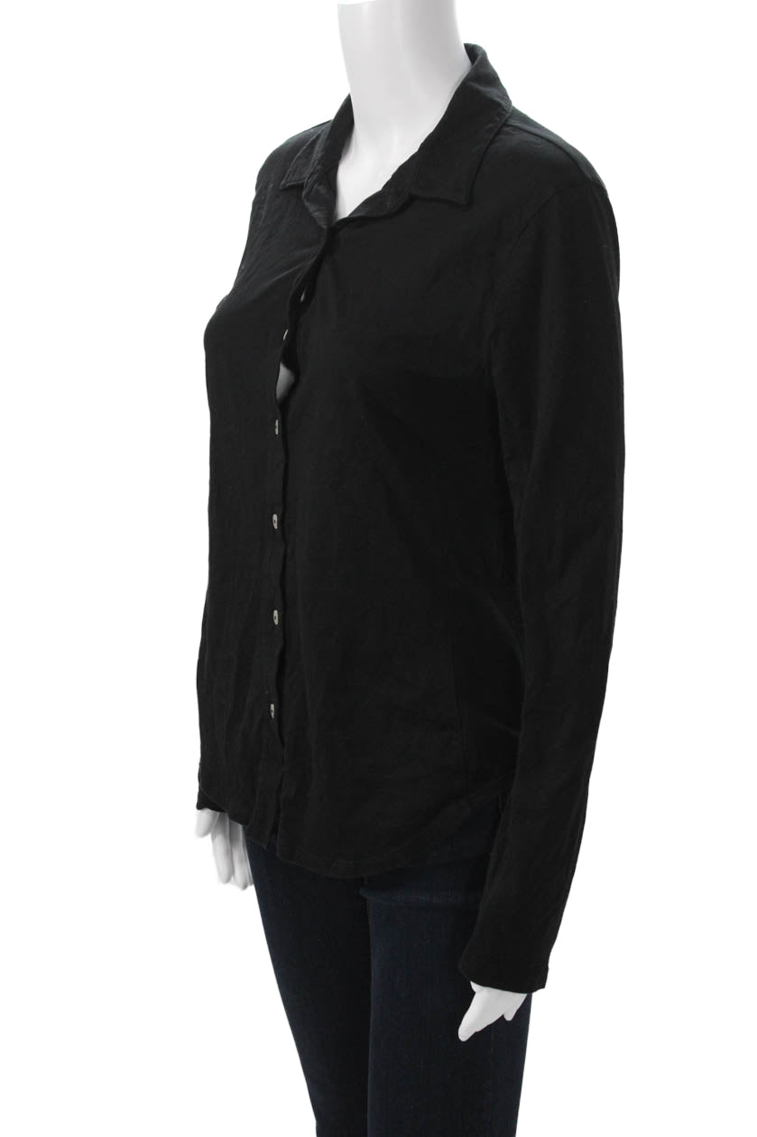 Goldie Women Collared Long Sleeve Basic Button-Up Black Pima Cotton Size M