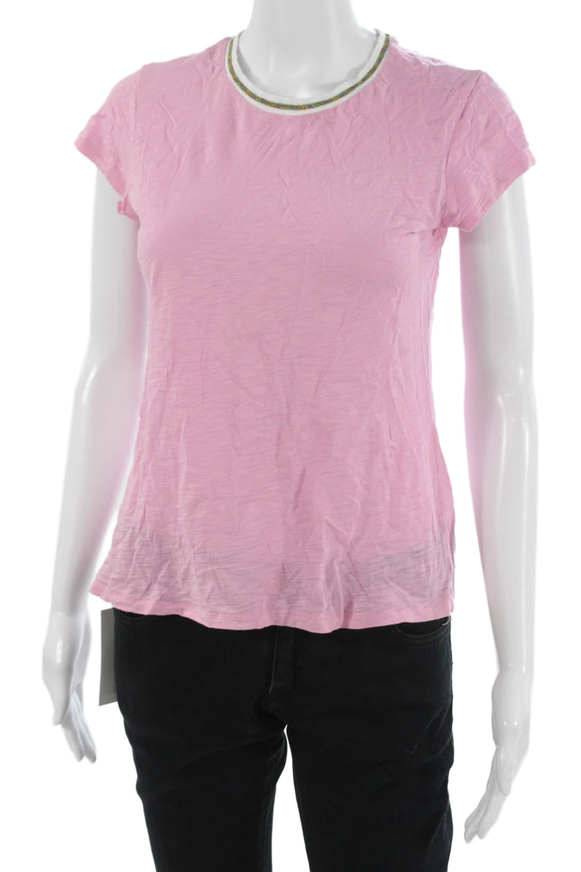 • Goldie Womens Pink Ringer Tee Short Sleeve Crew Neck Viscose Size XS