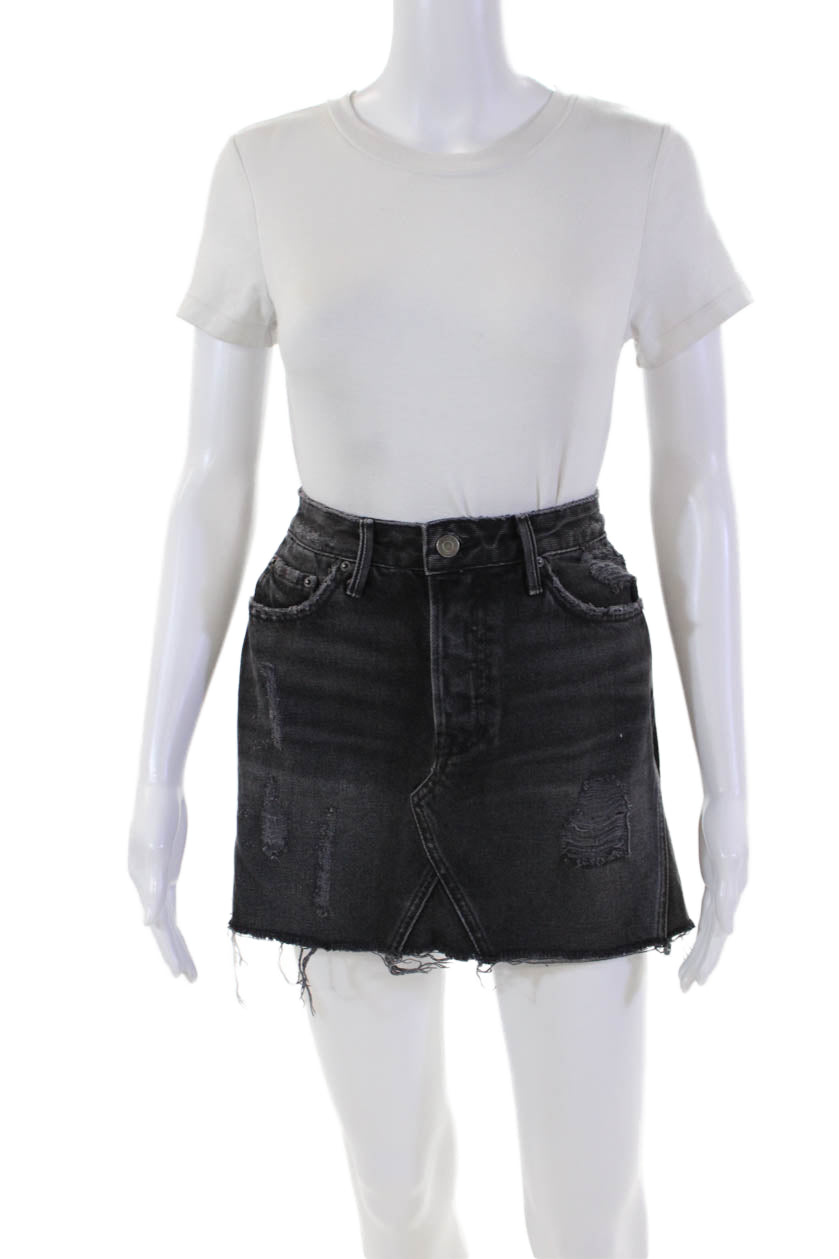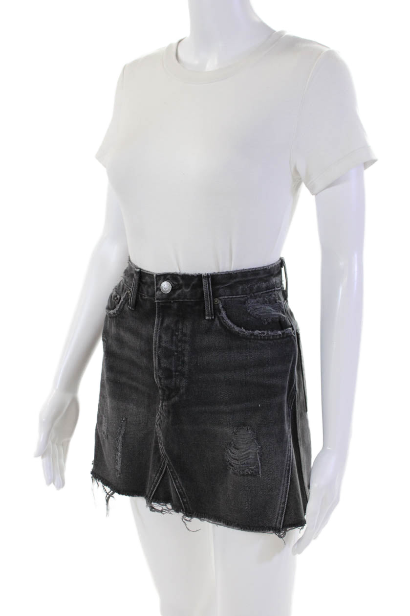 Grlfrnd Womens Denim Hotel California Wash Mini Skirt Black Cotton Size 25