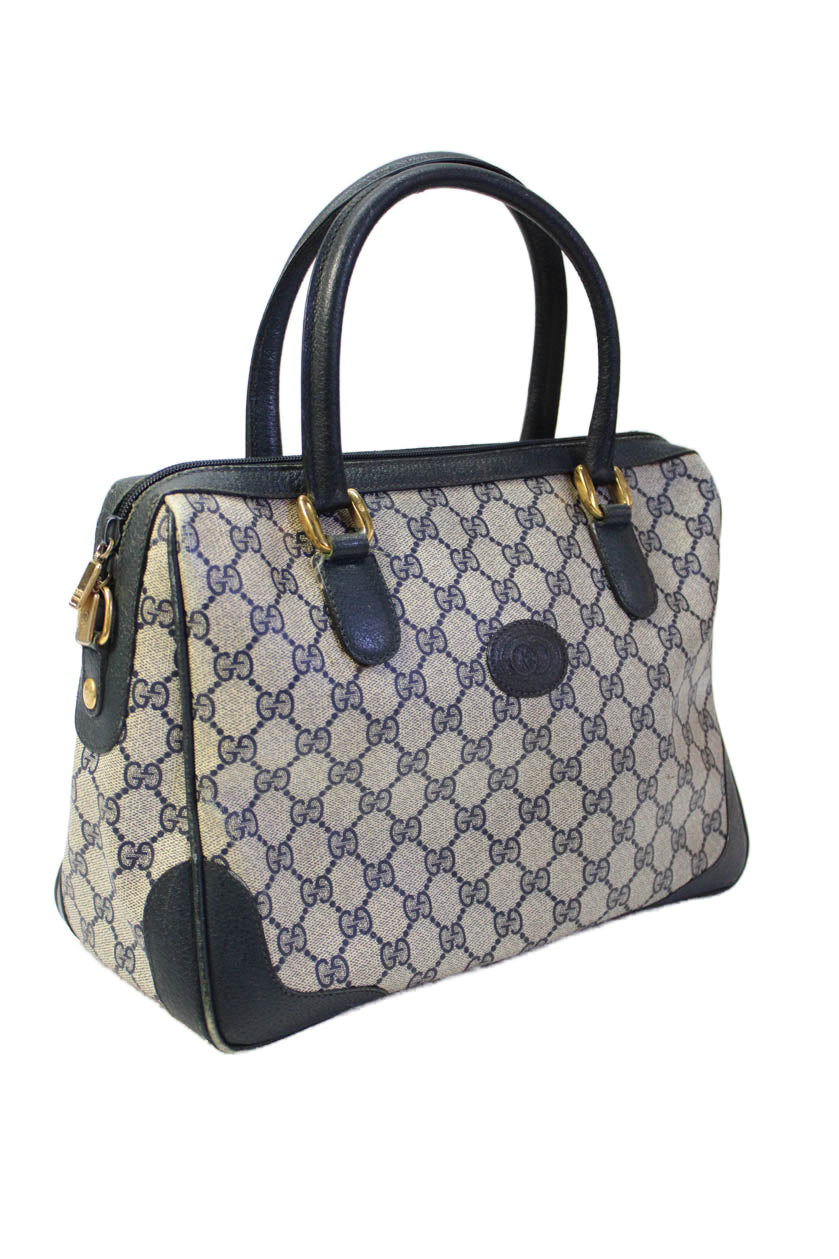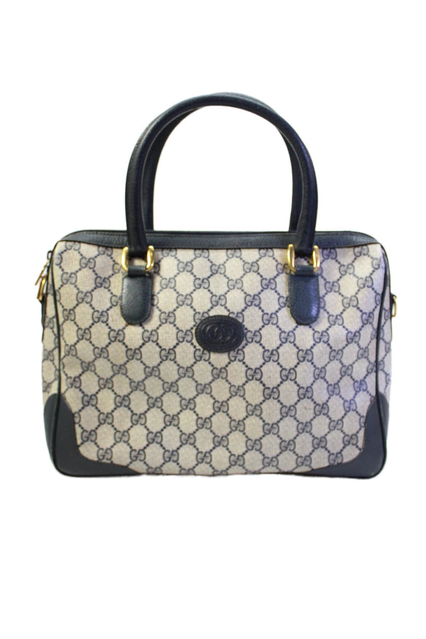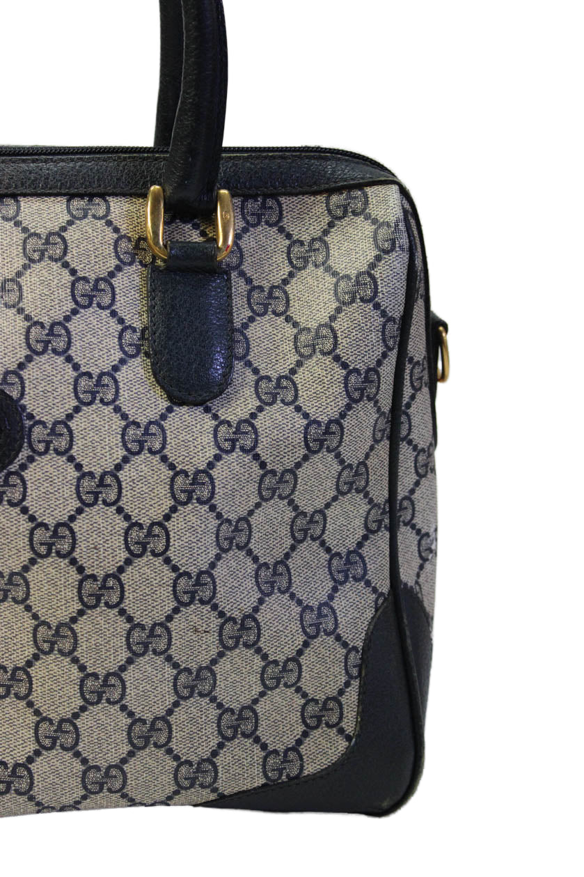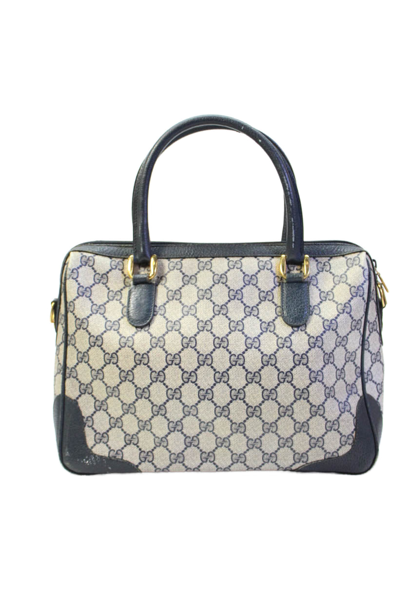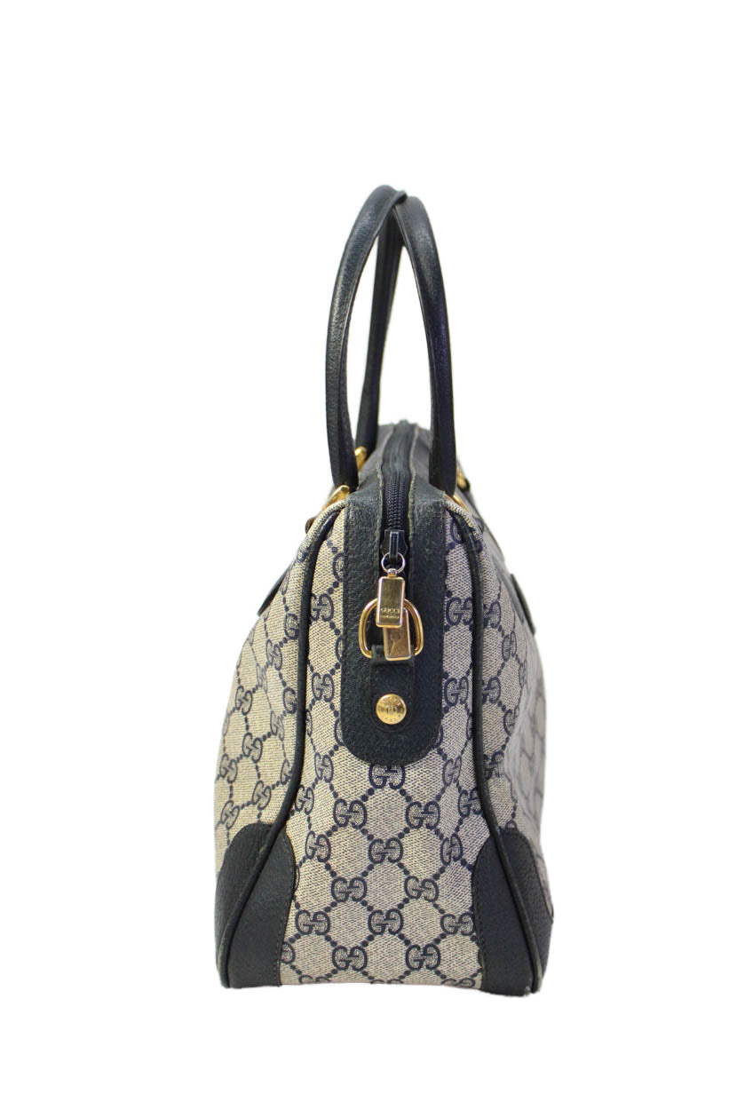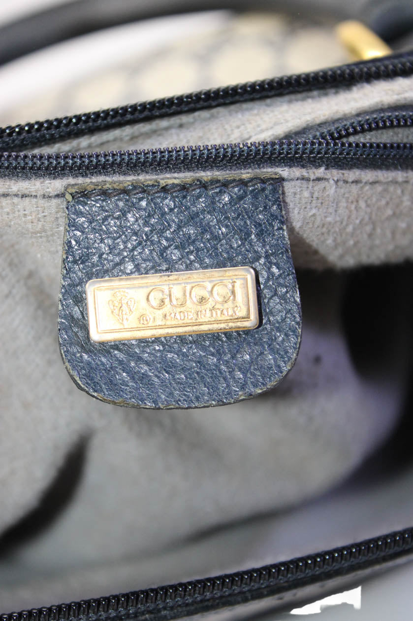 Gucci Womens Double G Zip Up Top Handle Handbag Navy
