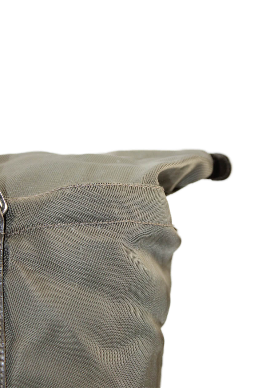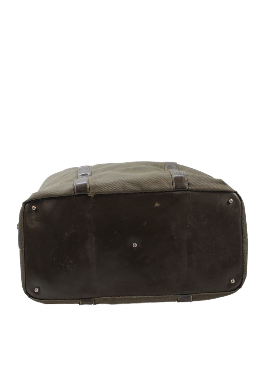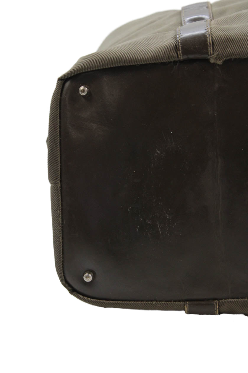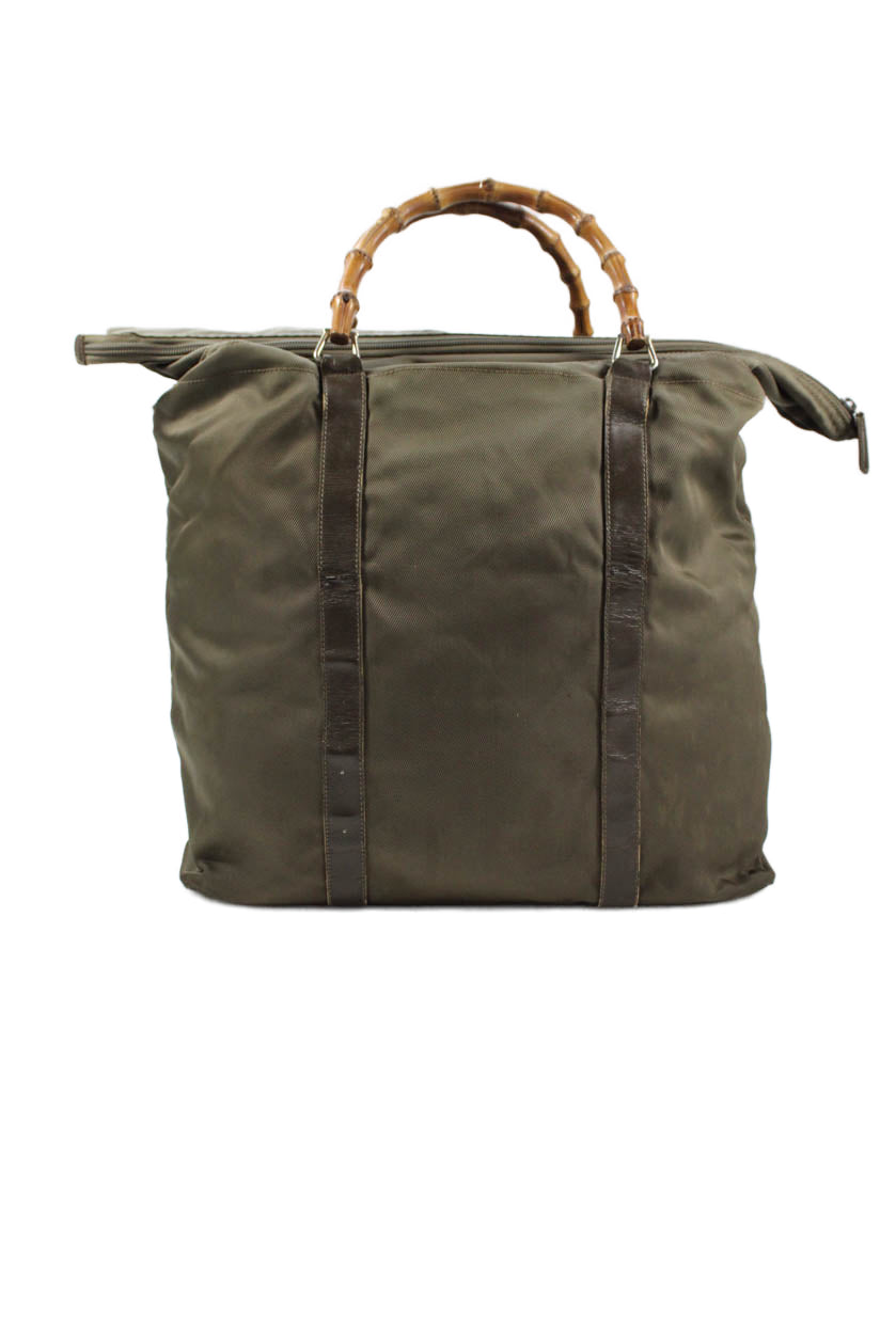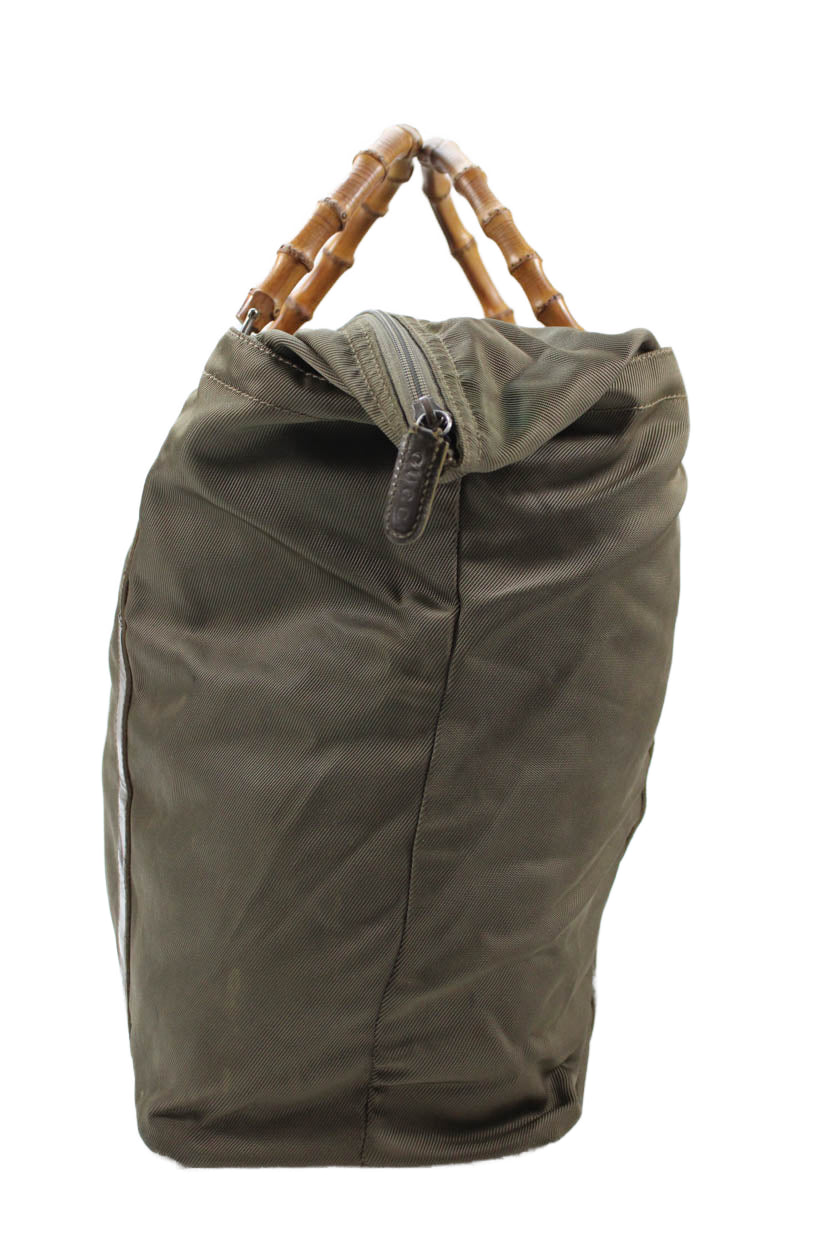Gucci Womens Solid Bamboo Handle Zip Up Duffle Bag Green