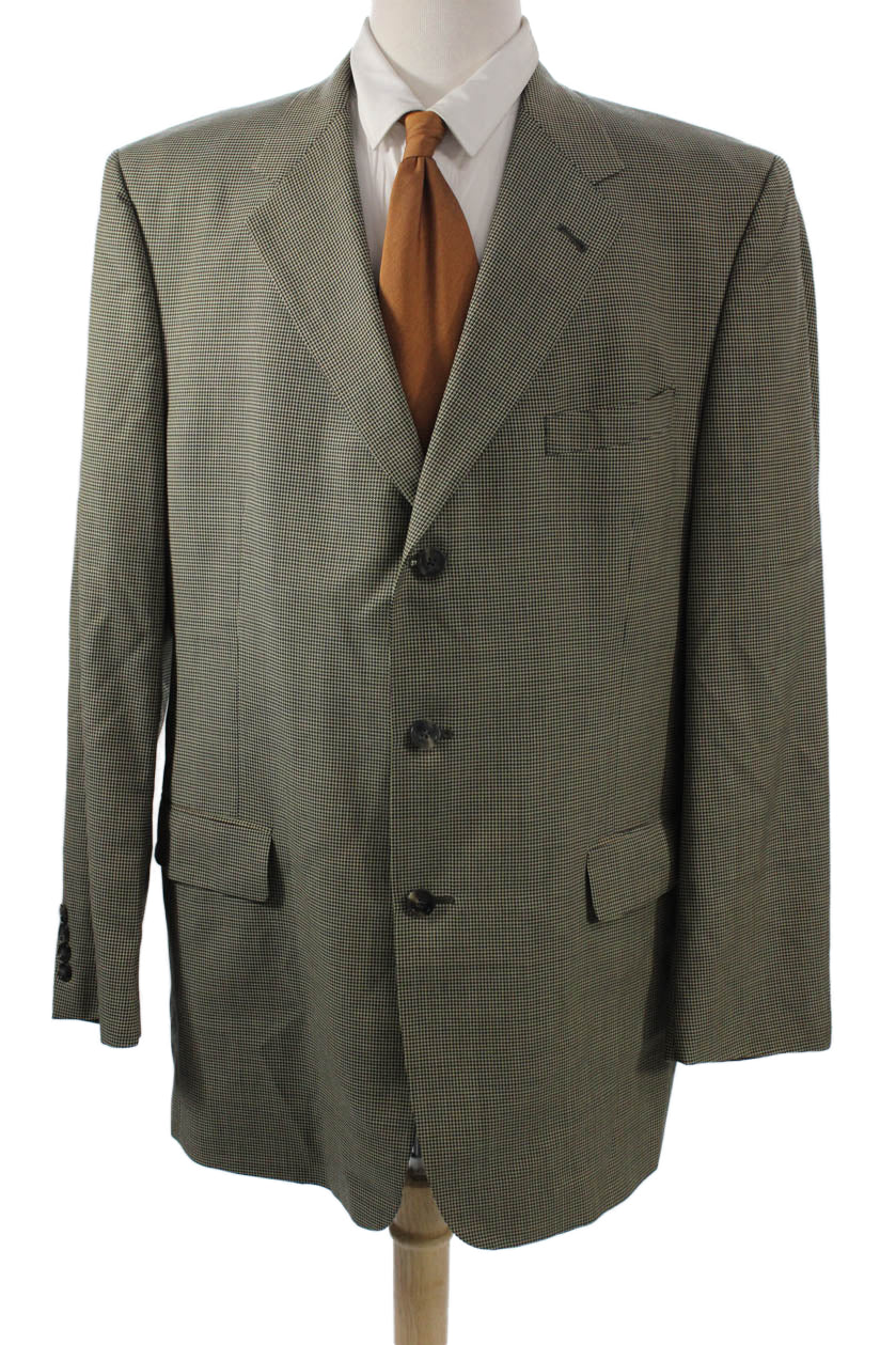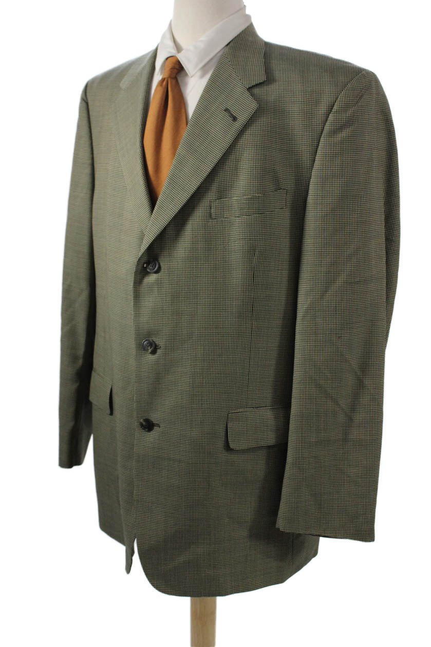 Hart Schaffner Marx Mens Green Check Suit Jacket Size 46