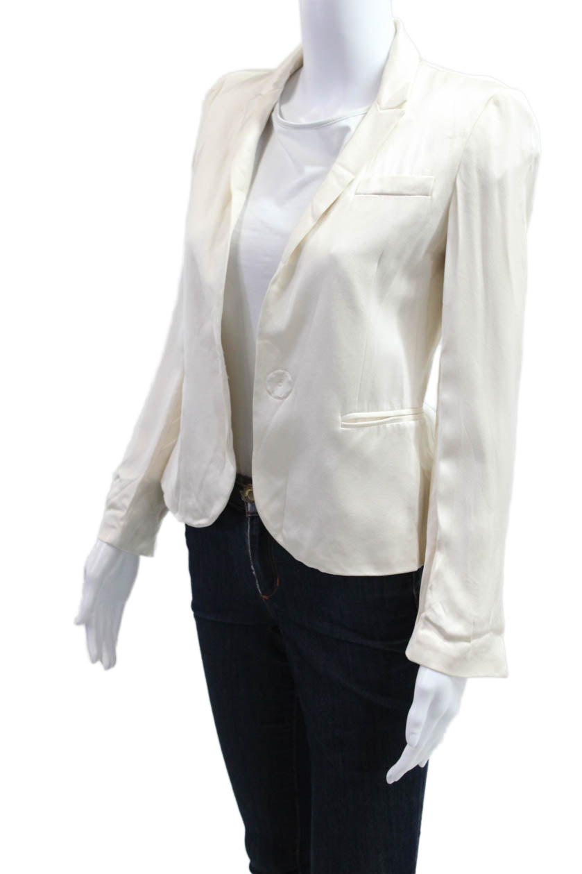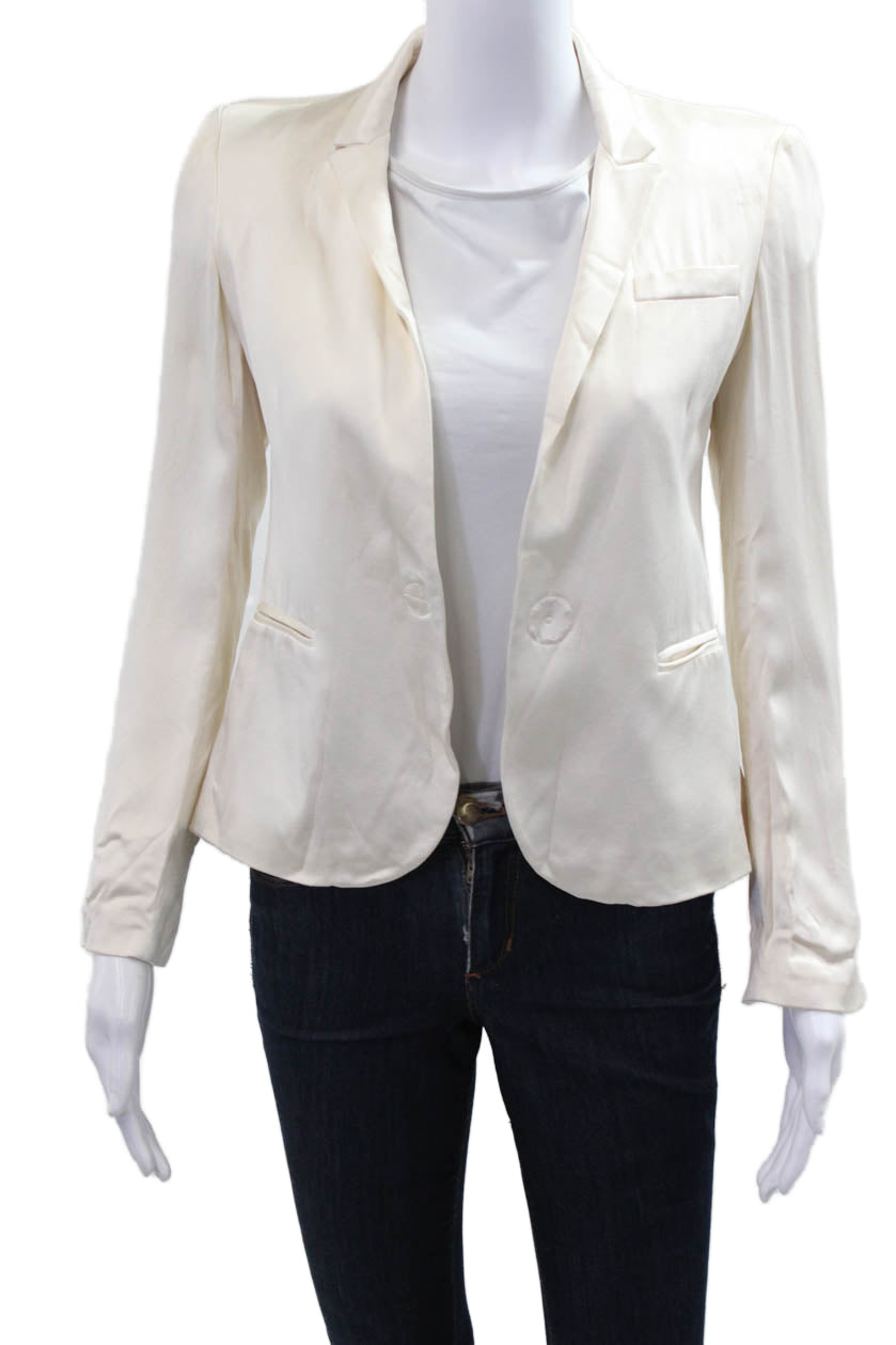 Haute Hippie Womens White Silk Collared Blazer Long Sleeve Size 0