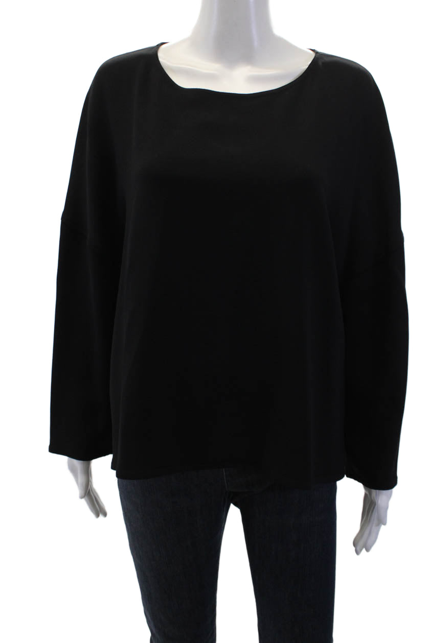 Helmut Lang Women Basic Black Long Sleeve Round Neck Blouse Size S
