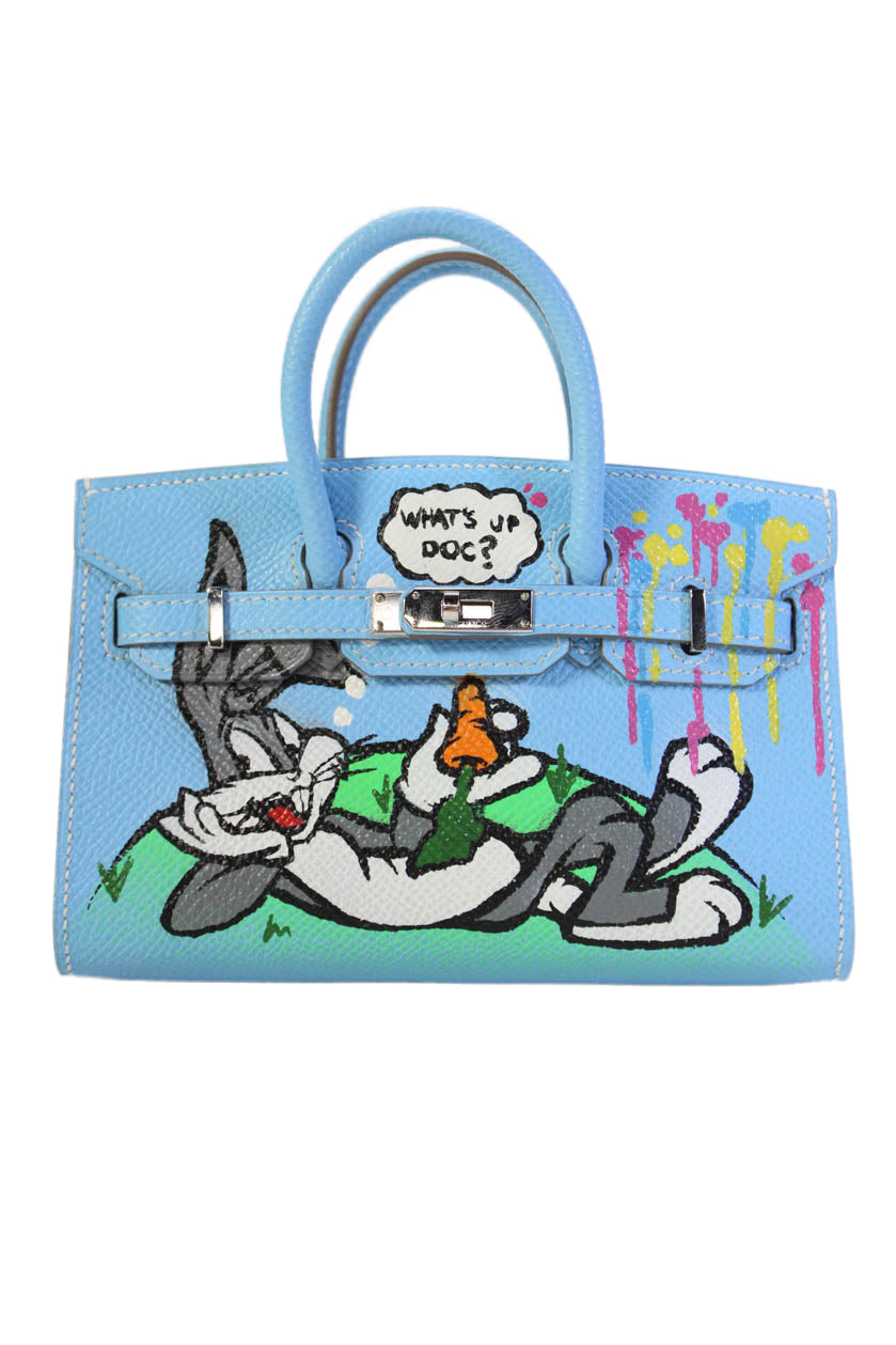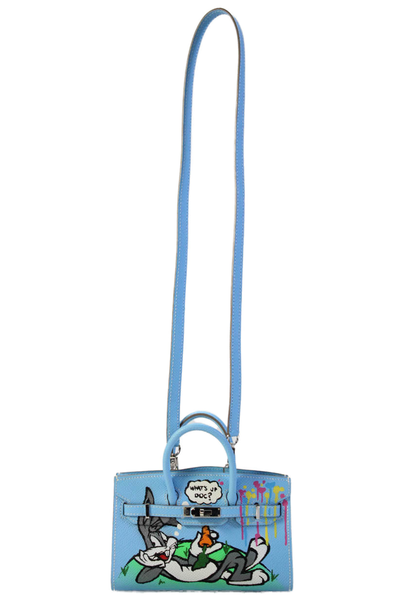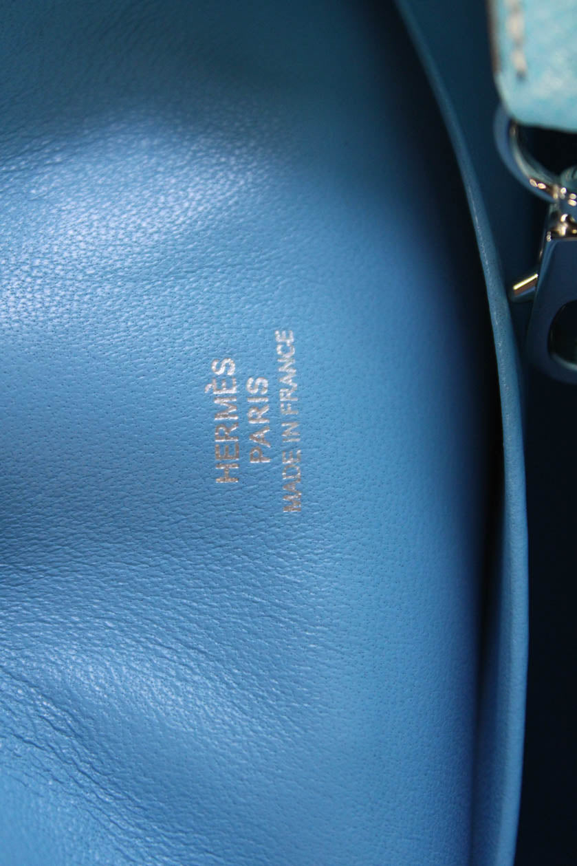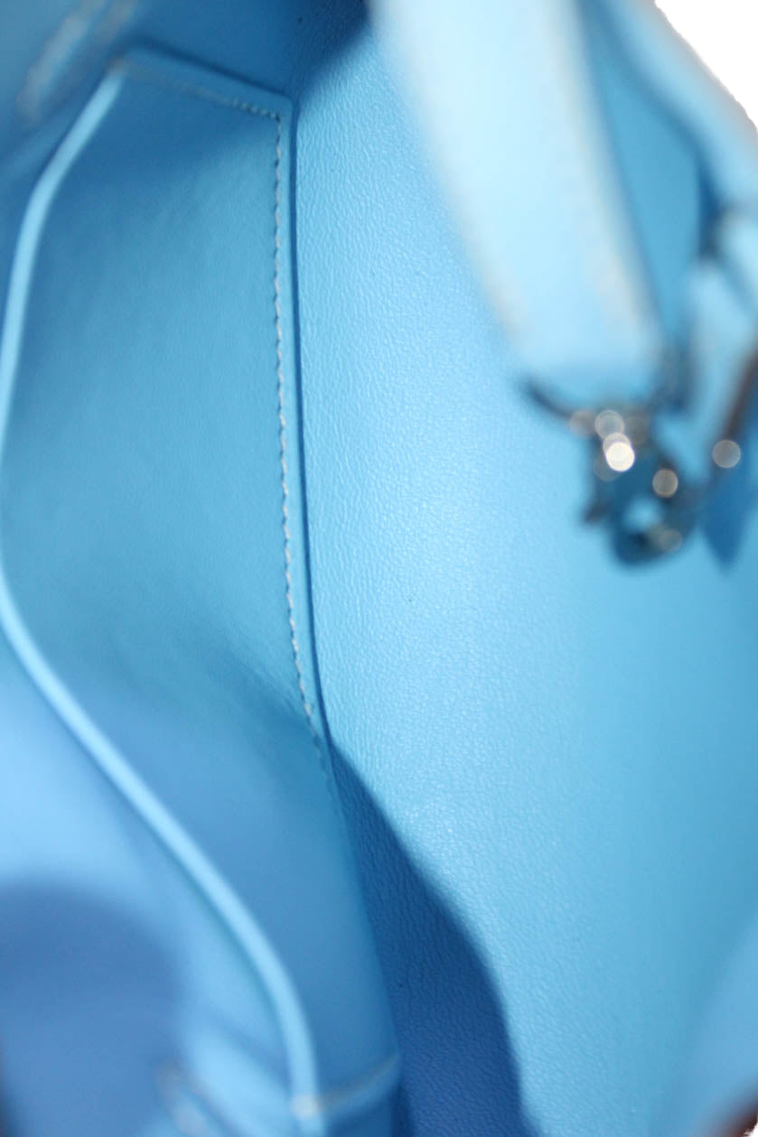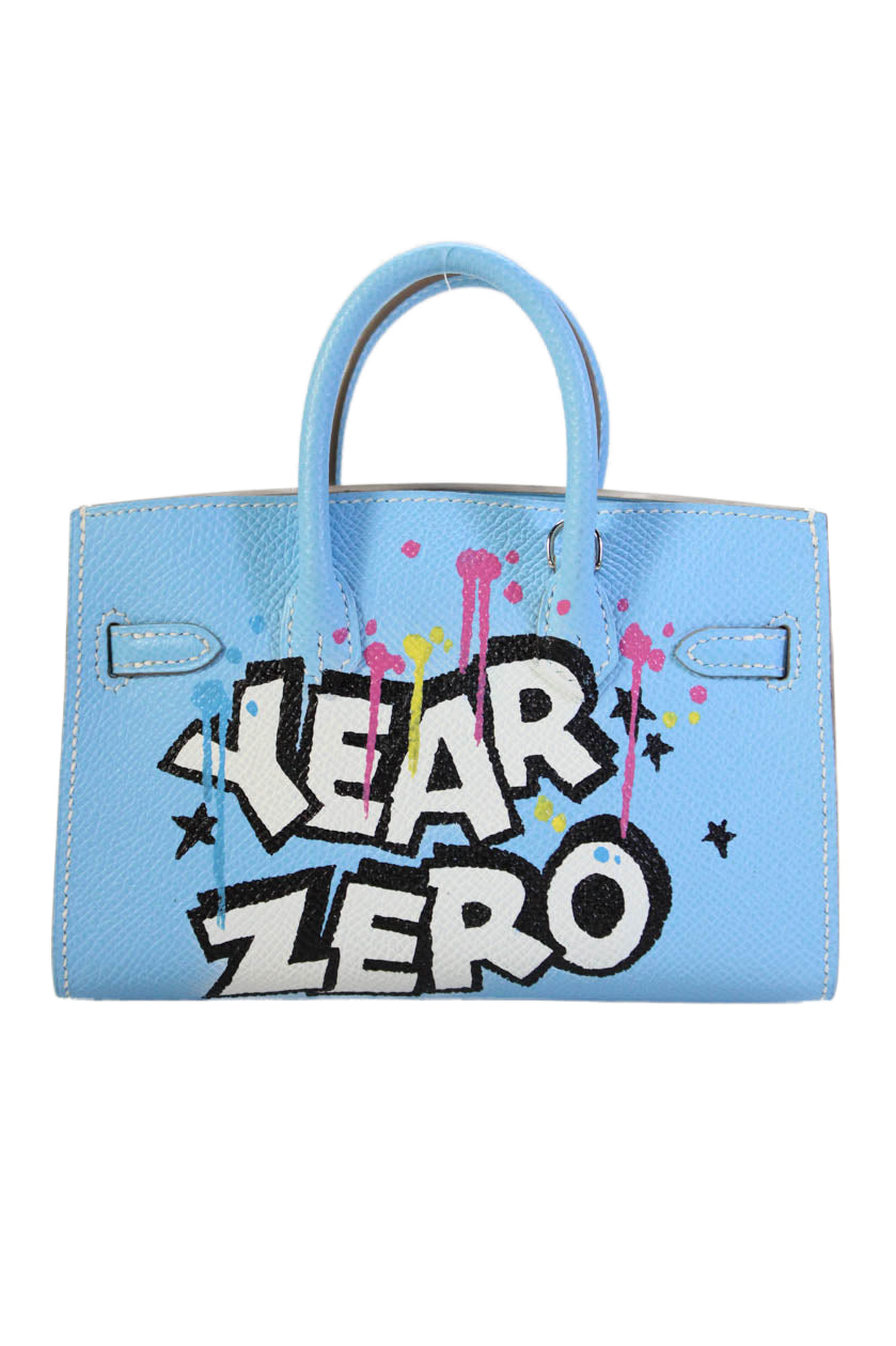 Hermes Womens Hand Painted Epsom Leather Micro Birkin 15 Handbag Blue White