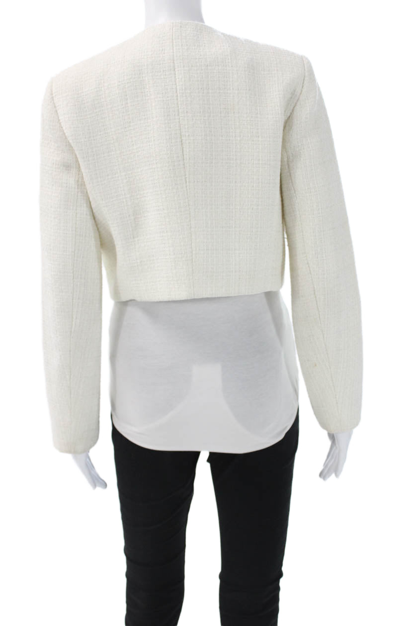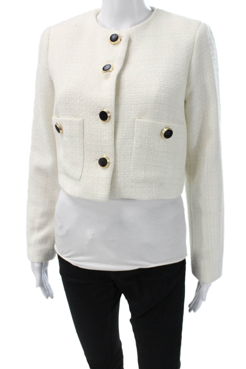 Hilary Radley Womens Blazer White Solid Button Long Sleeve Polyester Size 4