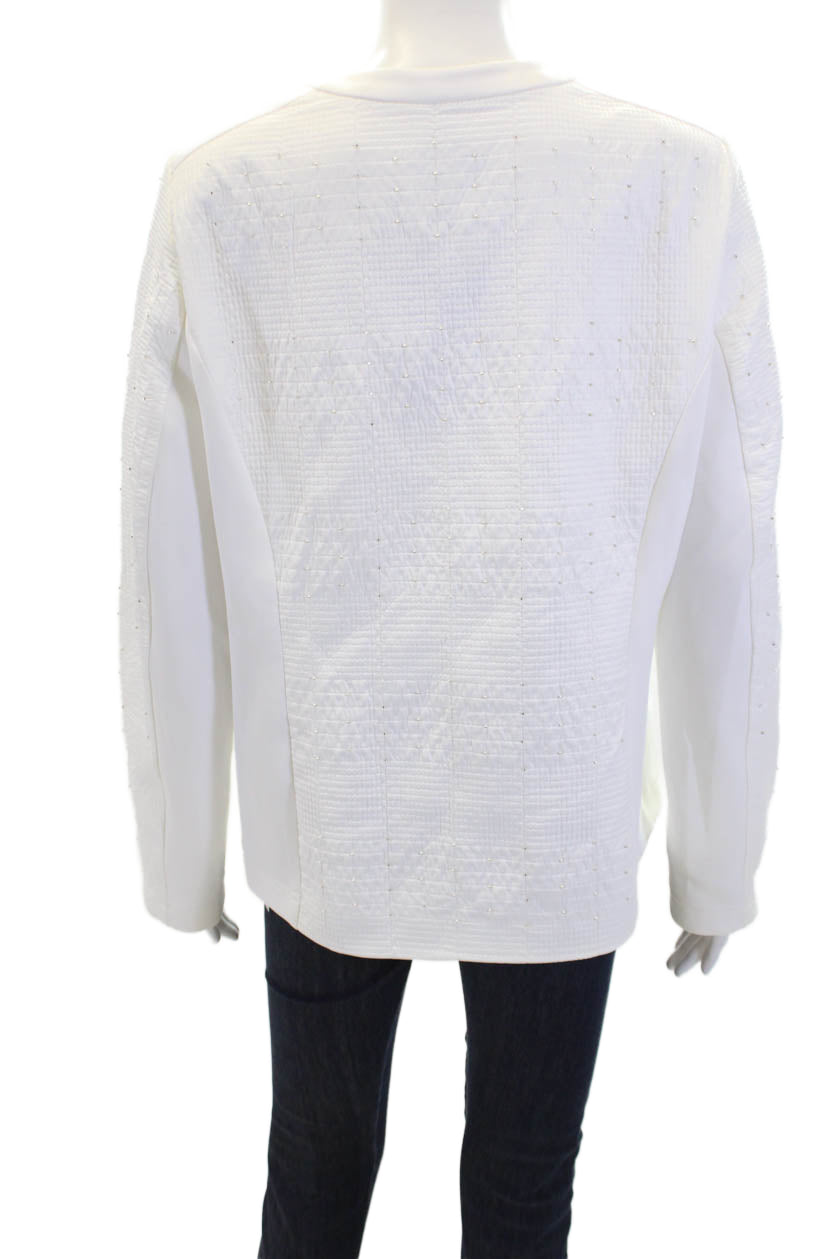 I' Cona Womens Long Sleeves Full Zip Studs Pockets Basic Jacket White Size 44