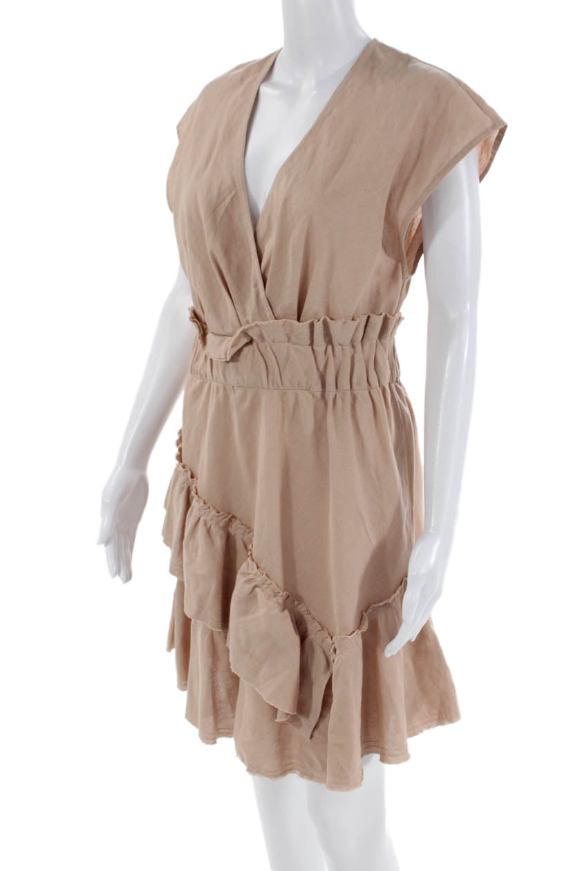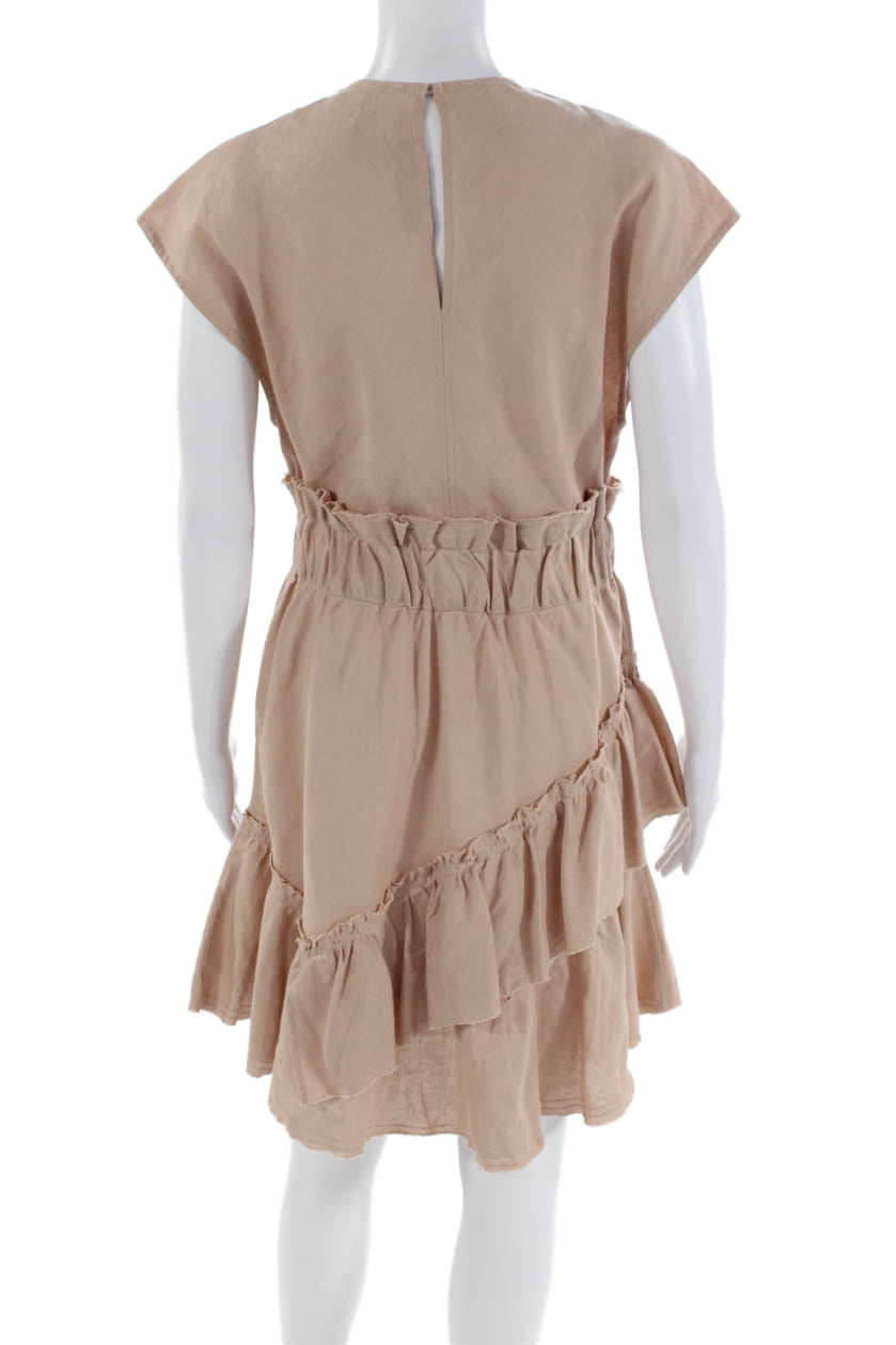 IRO Womens Linen Sleeveless V Neck A Line Ruffled Billow Dress Beige Size EUR 36