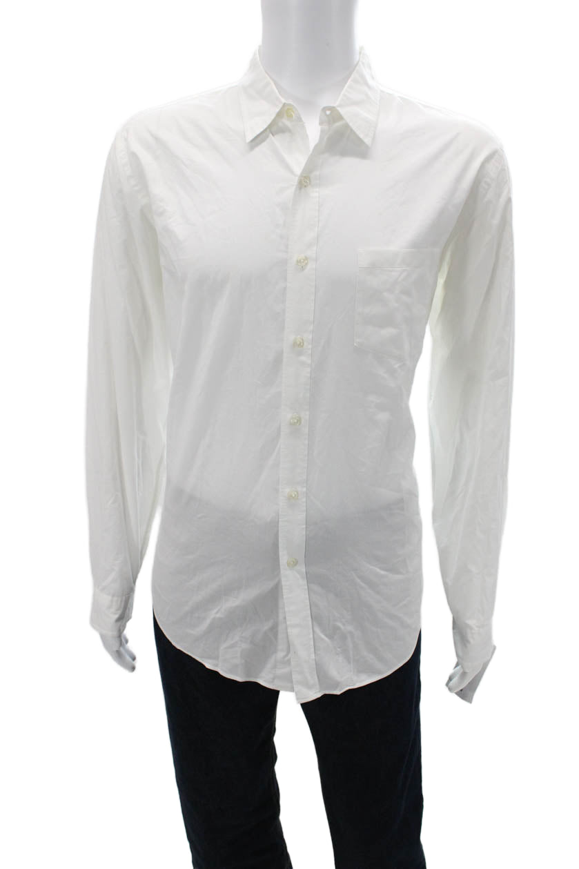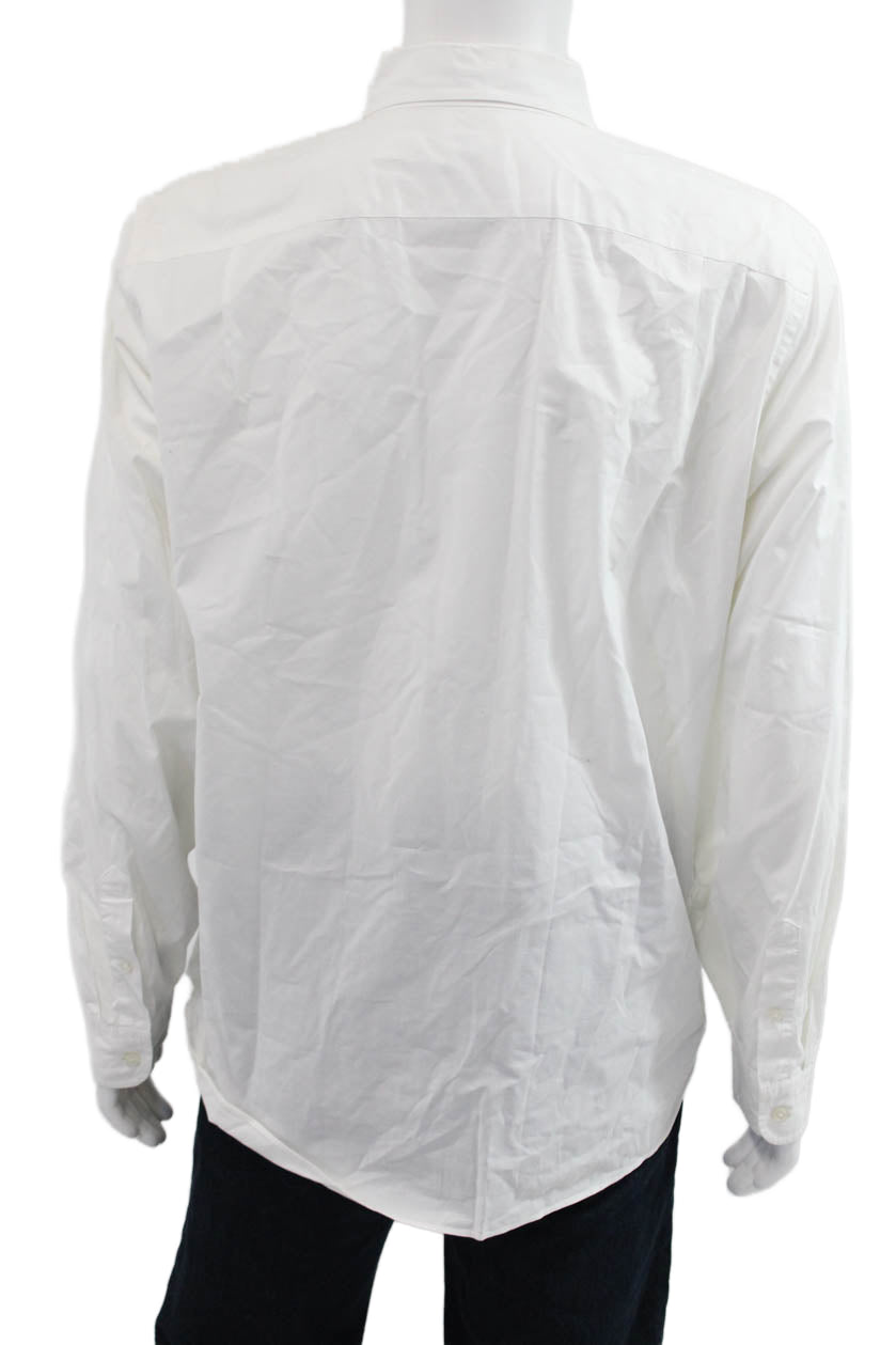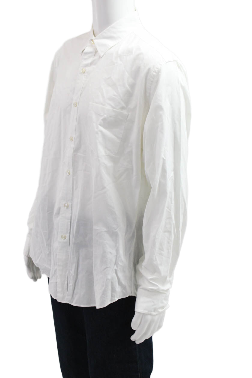 J Crew Mens Point Collar Button Up White 100% Cotton Long Sleeve Size L