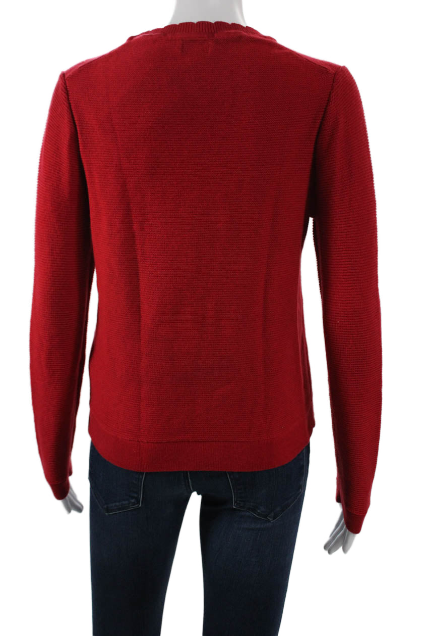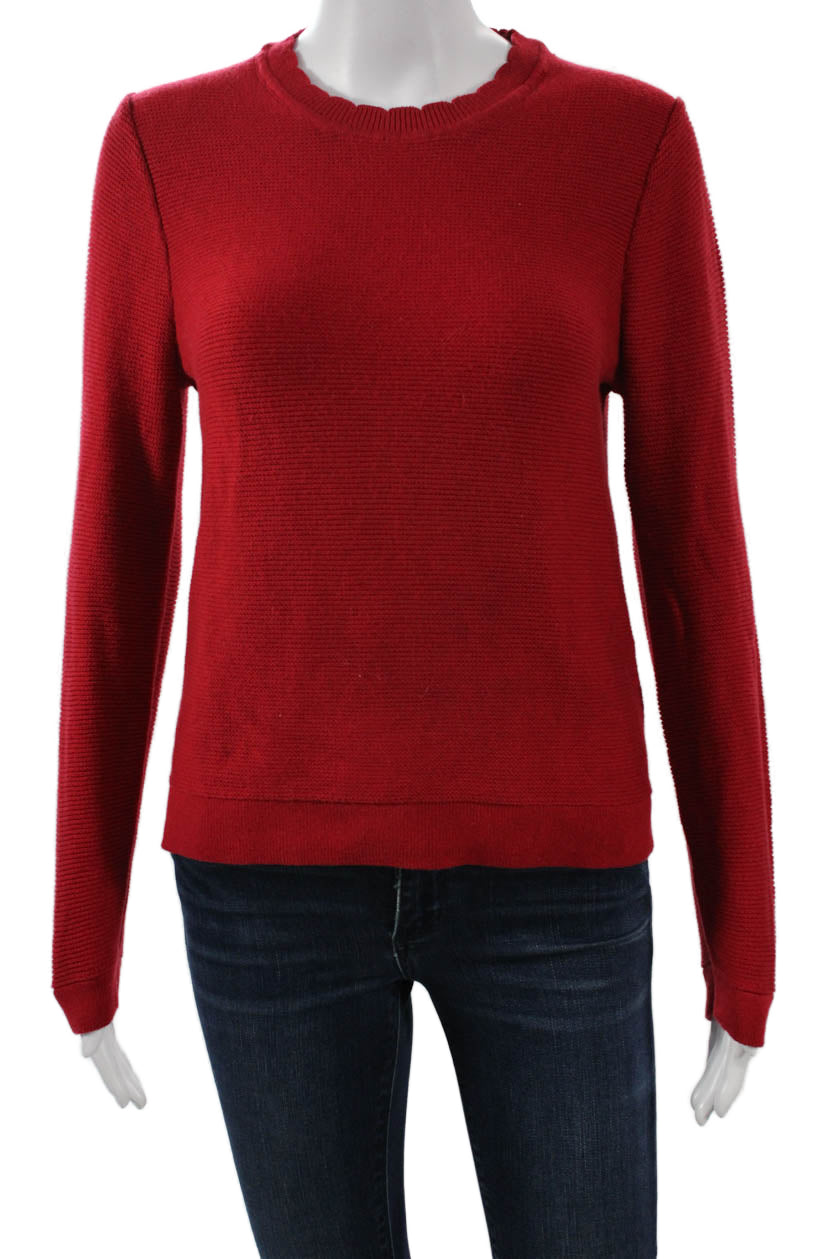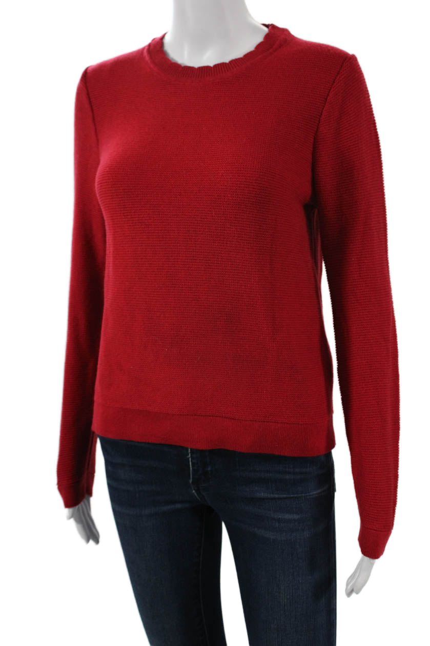 J Crew Women Red Pullover Sweater Long Sleeve Crew Neck Cotton Blend Size S