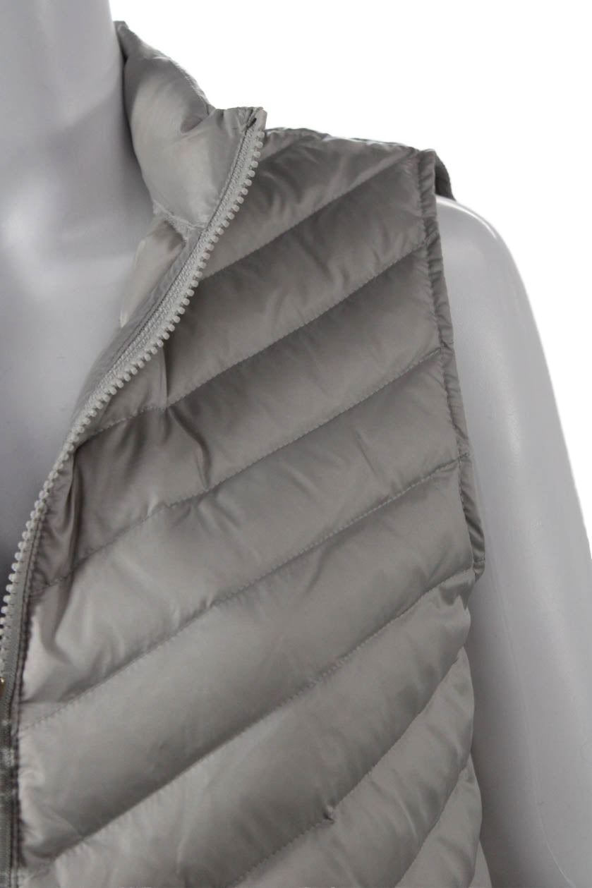J. Mclaughlin Womens Gray Quilted Puffer Vest Nylon Zip High Neck Size M