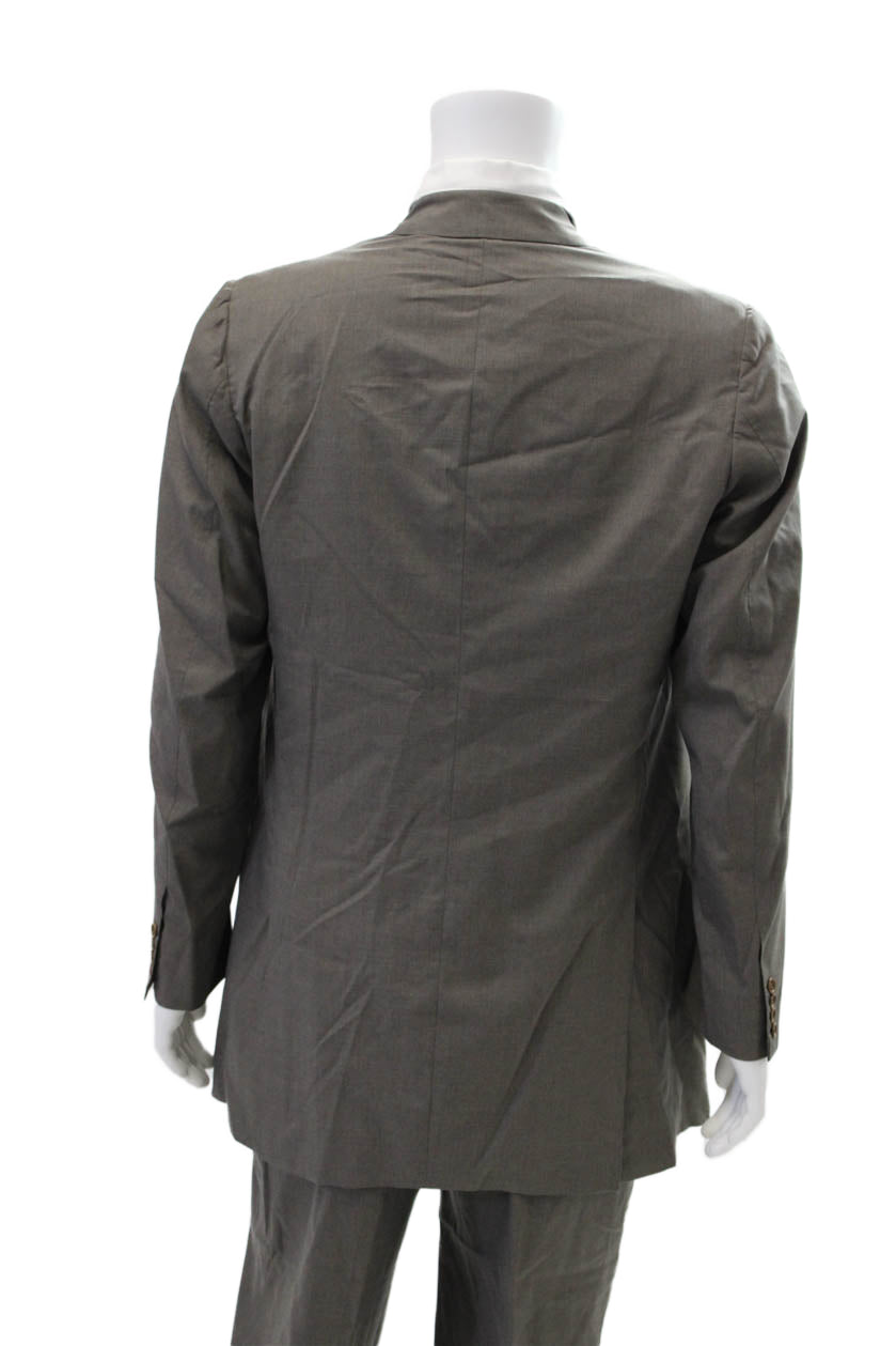 Kiton Mens Wool Three-Button Long Sleeve Collared Blazer Set Solid Gray Size 54