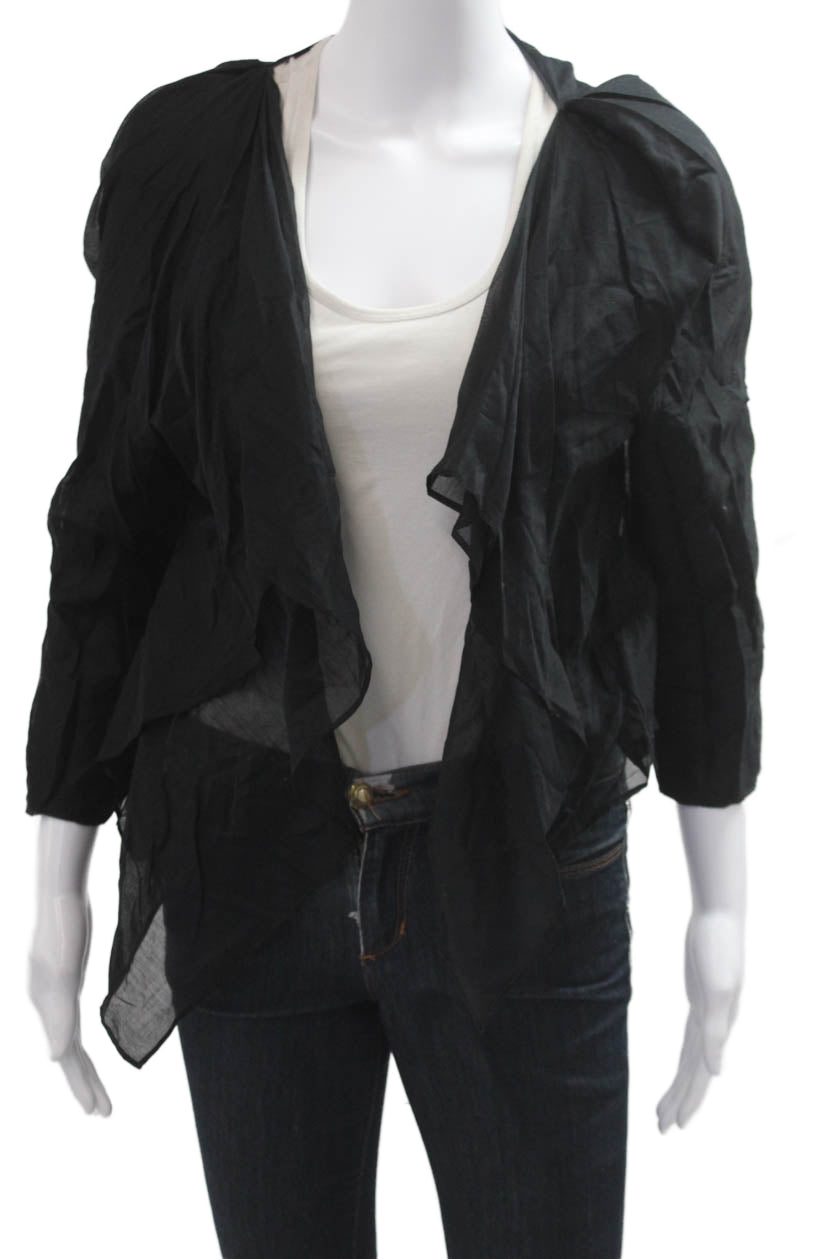 La Petite S Women Kimono Top Black Cotton 3/4 Sleeve Boho Size 42 Petite