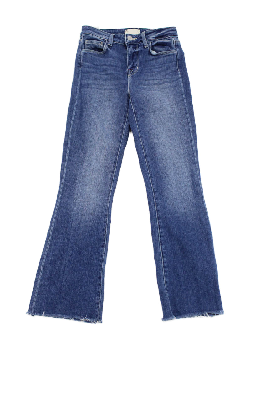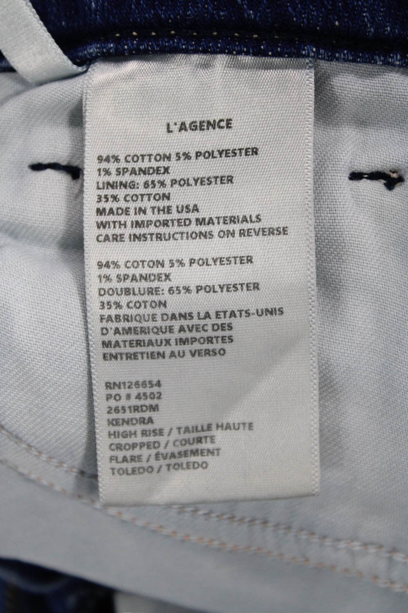 L'Agence Women Cropped Flared Blue Mid-Rise Jeans Size 23