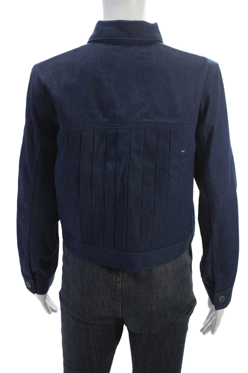 Levis Women Collared Button Dark Blue Classic Cotton Blend Jacket Size S