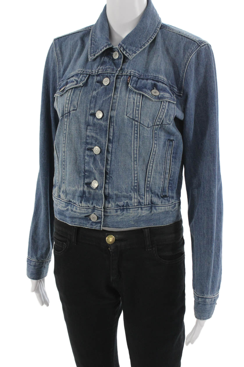 Levis Womens 90s Blue Cotton Button Collared Long Sleeve Jacket Size M
