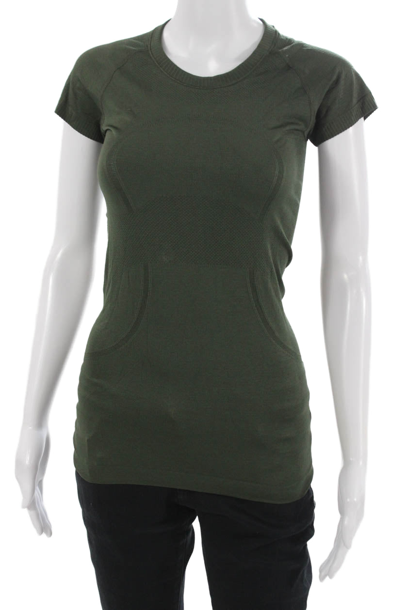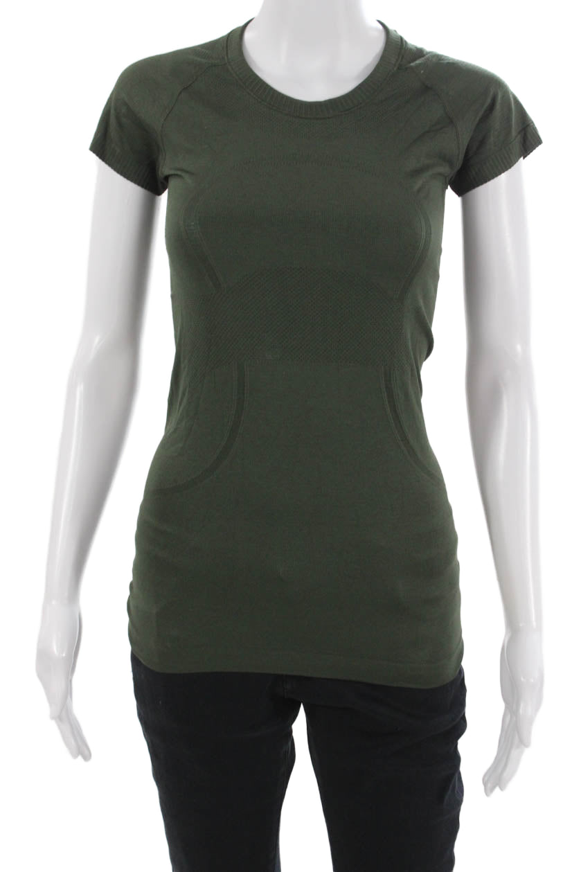 Lululemon Women Basic Nylon Crew Neck Short Sleeve Solid Green T-Shirt Size 4