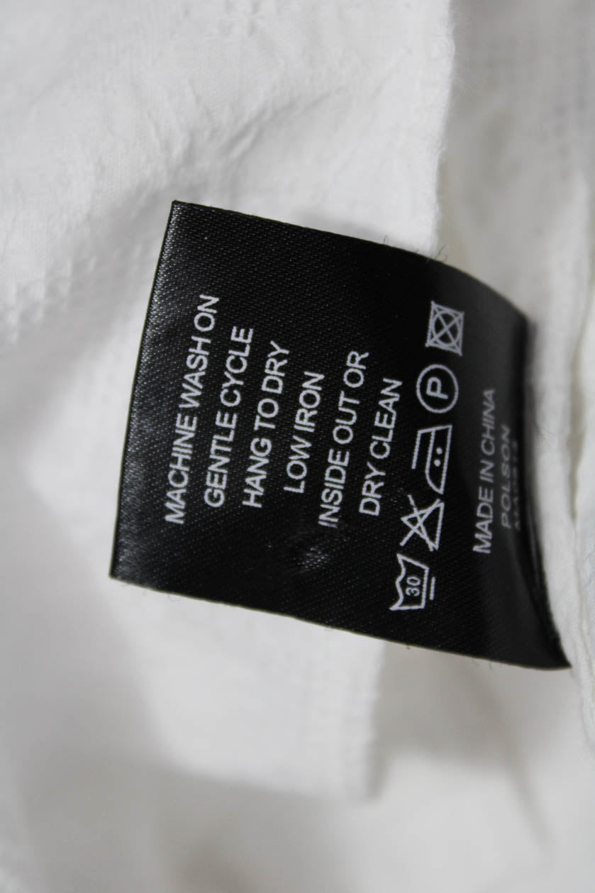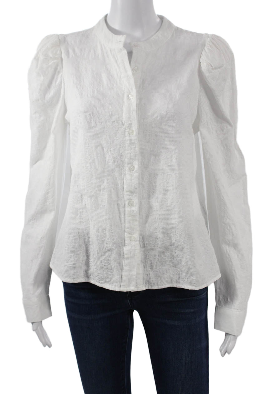 Maac Womens Classic Cotton Button Up Blouse Long Sleeve Crew Neck Size S