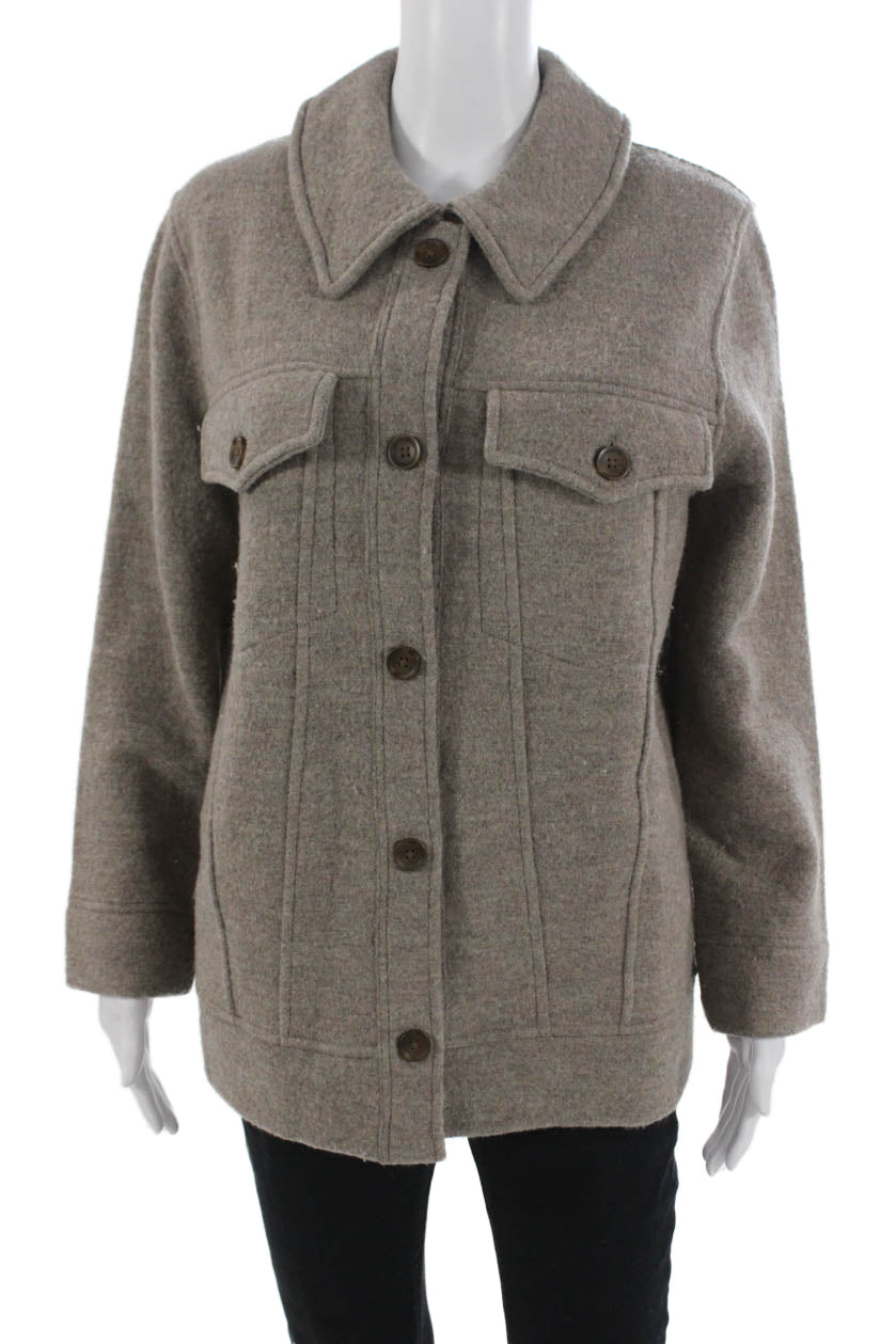 Madewell Women Merino Wool Collared Button Jacket Brown Long Sleeve Size XS
