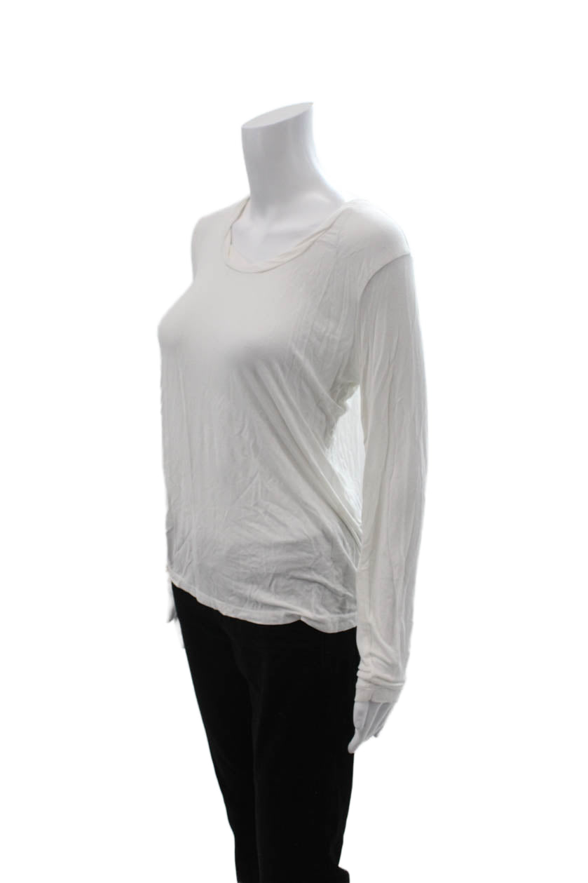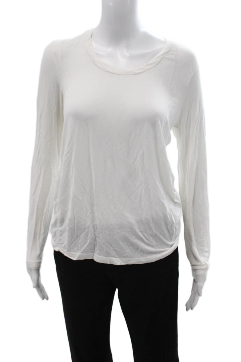 Malibu Women Basic T-Shirt White Long Sleeve Polyester Round Neck Size S