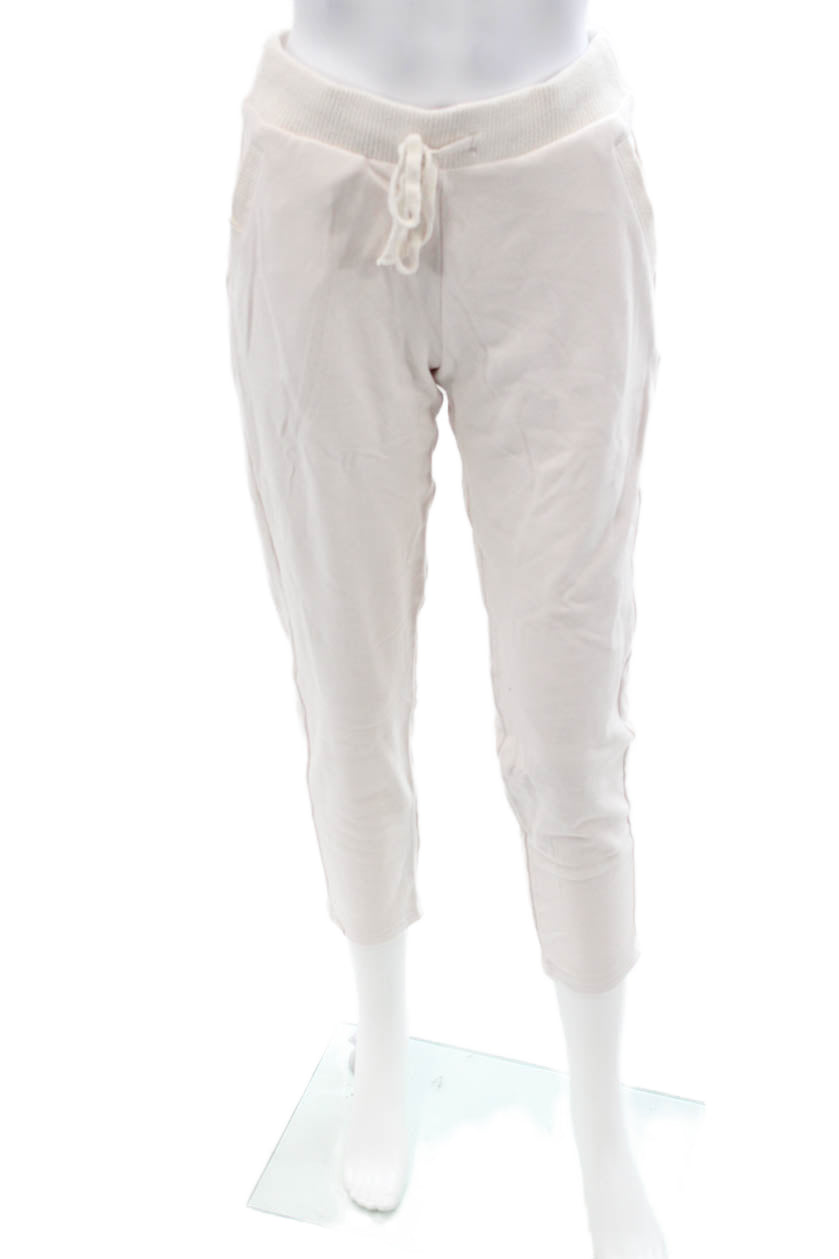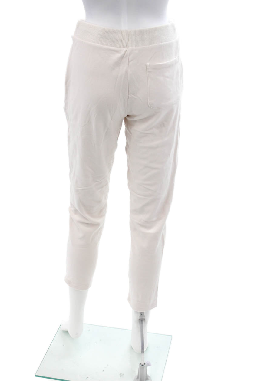 Malibu Women White Petite Jogger Sweatpants Polyester Drawstring Size XS