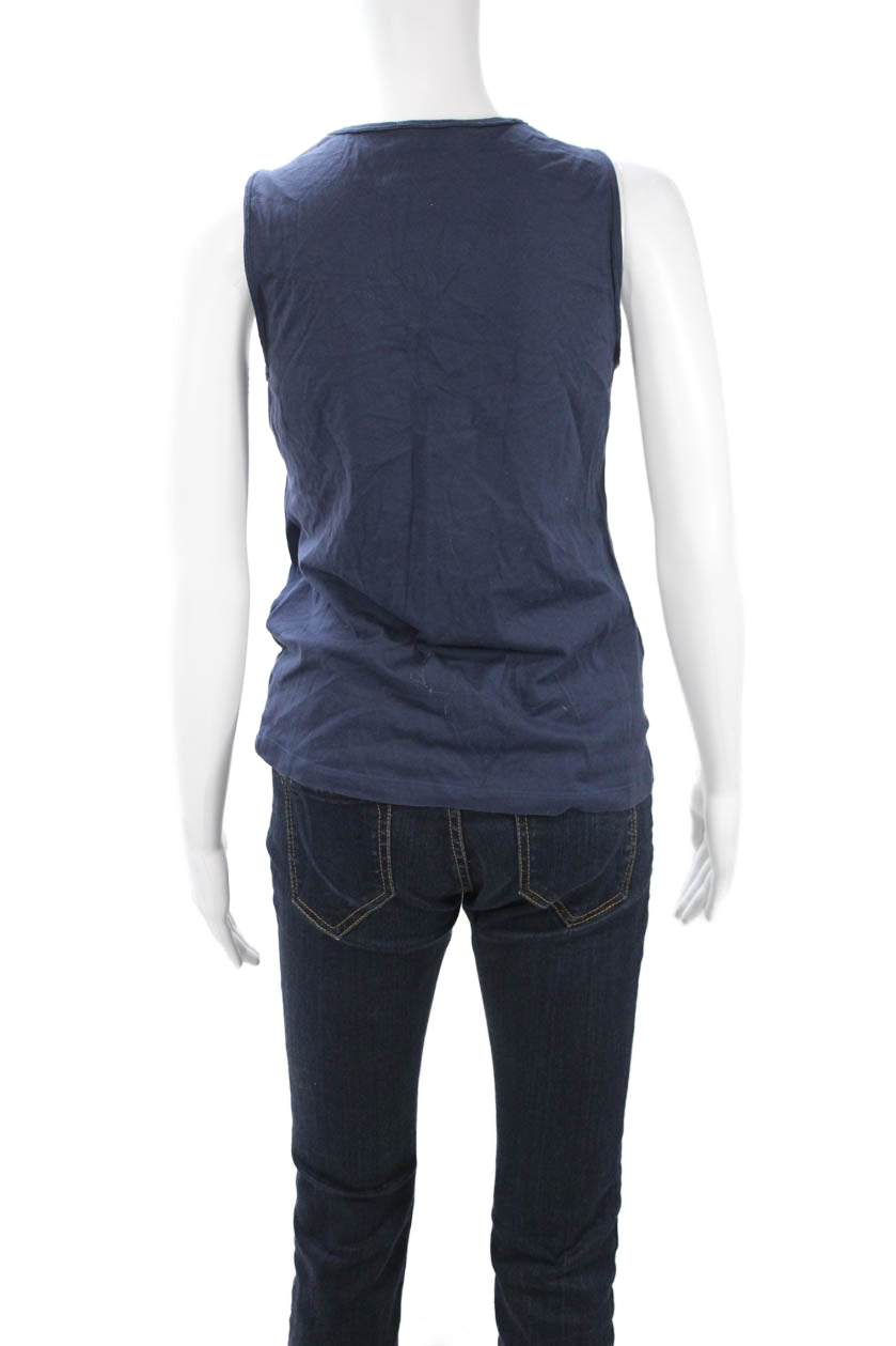Mantu Womens Designer Dark Blue V-Neck Tank Sleeveless Solid Silk Blend Size 40